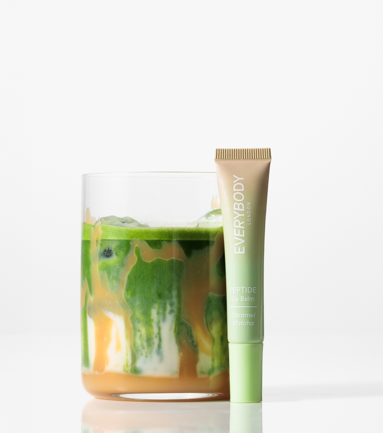 Caramelo Matcha Latte Le baume à lèvres Matcha Latte enveloppe vos lèvres d'une couche veloutée d'hydratation, les nourrissant et favorisant la régénération grâce au pouvoir des peptides.