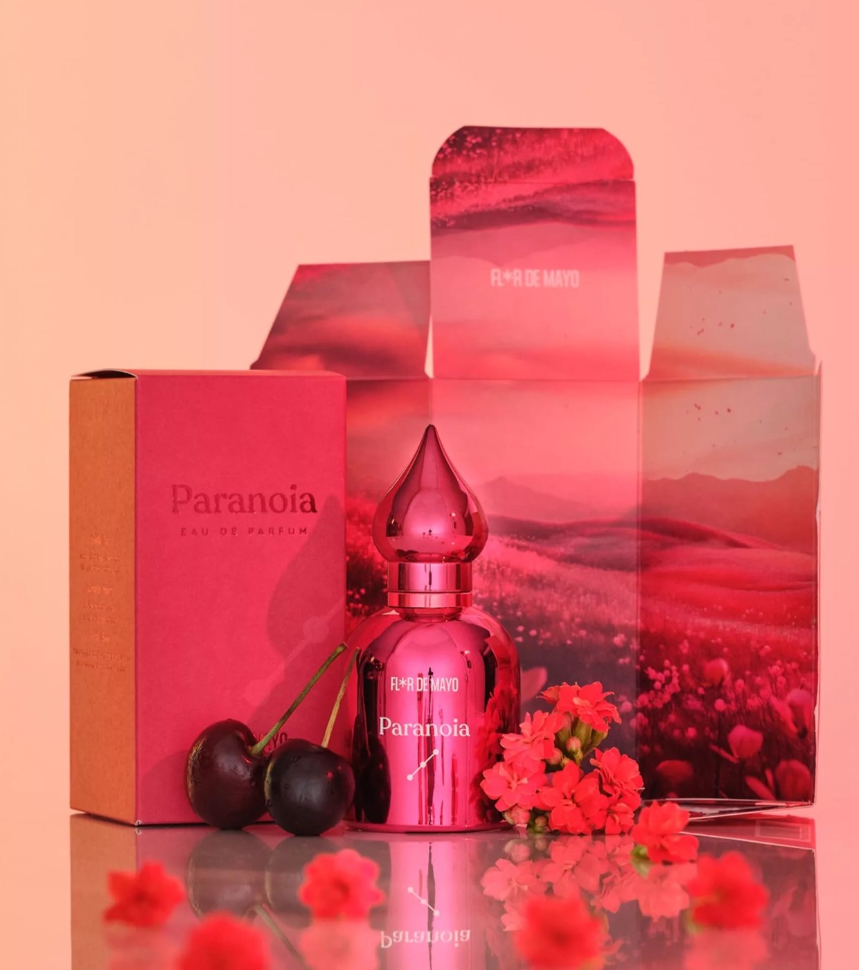 Ce parfum particulier oscille entre rêve et éveil, alliant la douceur juteuse de la cerise, la sensualité gourmande de la praline et la profondeur spirituelle du palo santo.