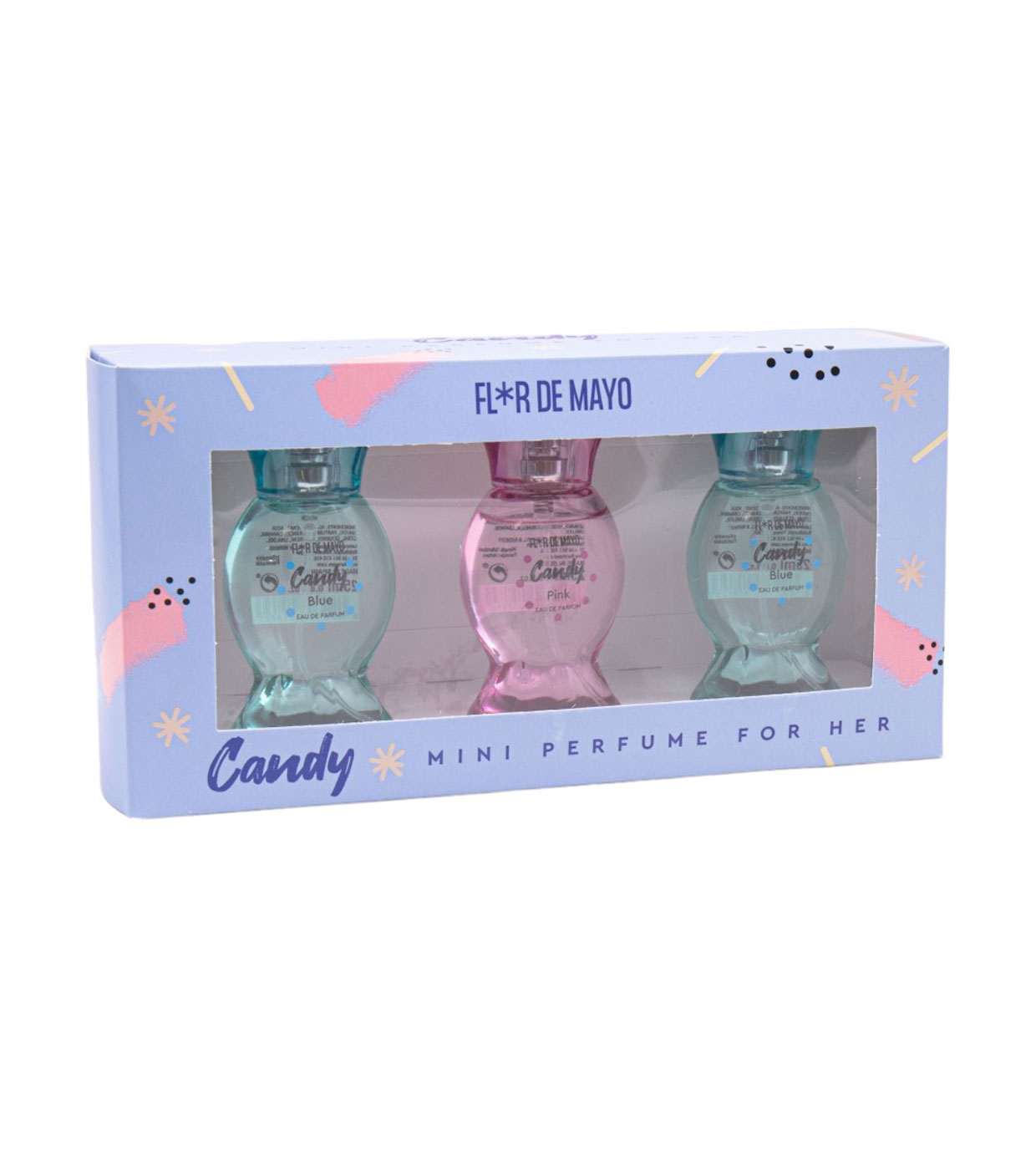 Ensemble de mini eaux de Cologne Candy de Flor de Mayo parfait pour offrir en cadeau à quelqu'un de spécial.