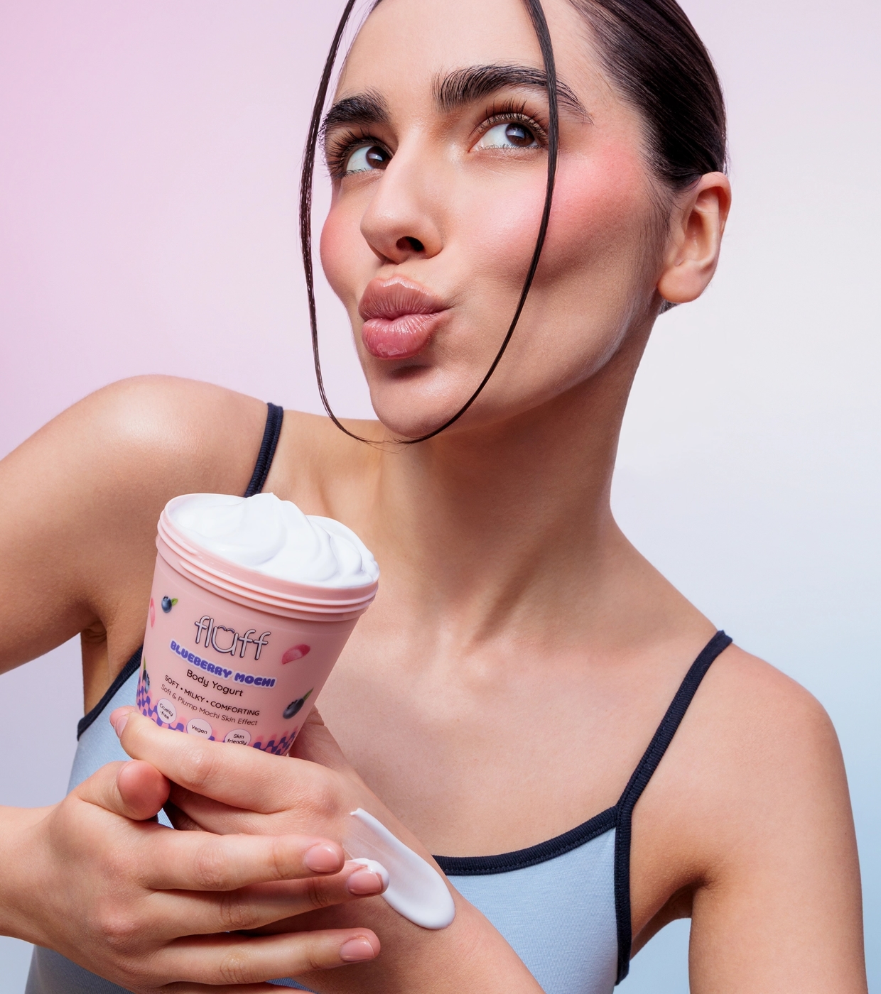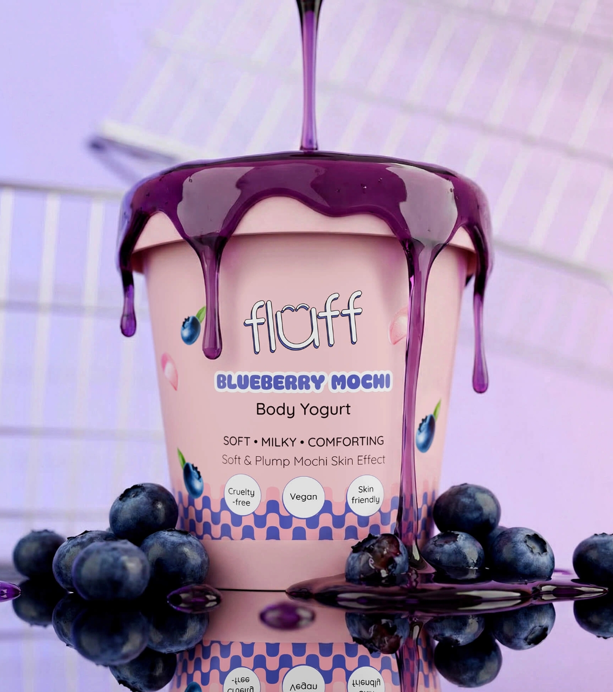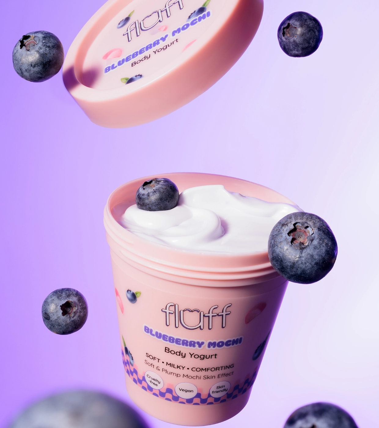Transformez votre routine corporelle en un moment de plaisir avec le yaourt corporel Blueberry Mochi de Fluff , un yaourt qui hydrate, adoucit et enveloppe votre peau d'un délicieux parfum sucré.