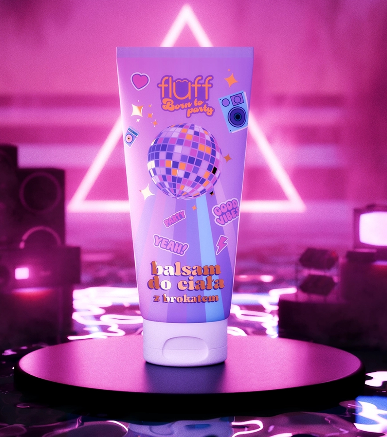 Born To Party Fluff La lotion corporelle pailletée est la touche parfaite pour obtenir instantanément une peau lumineuse et festive.
