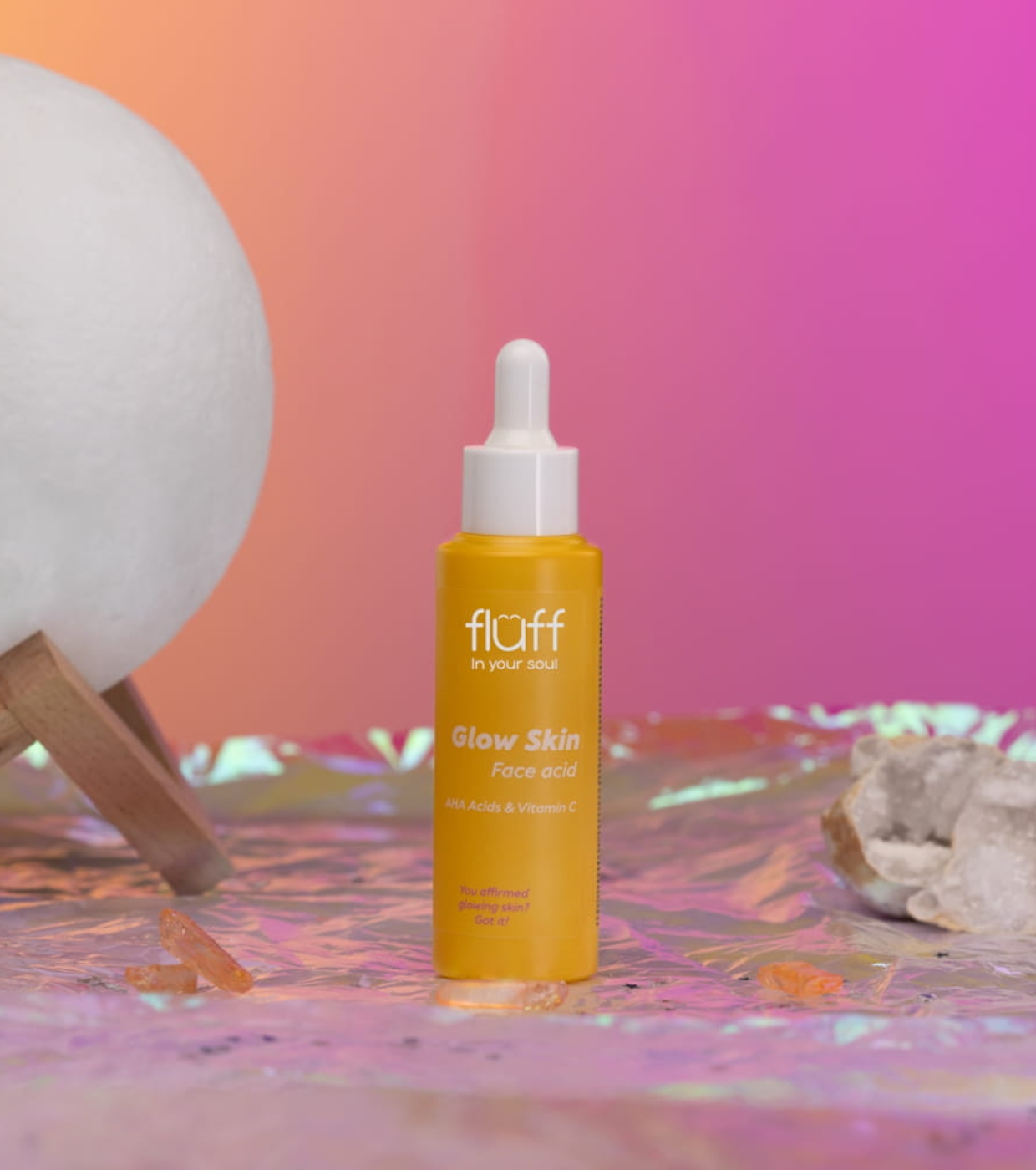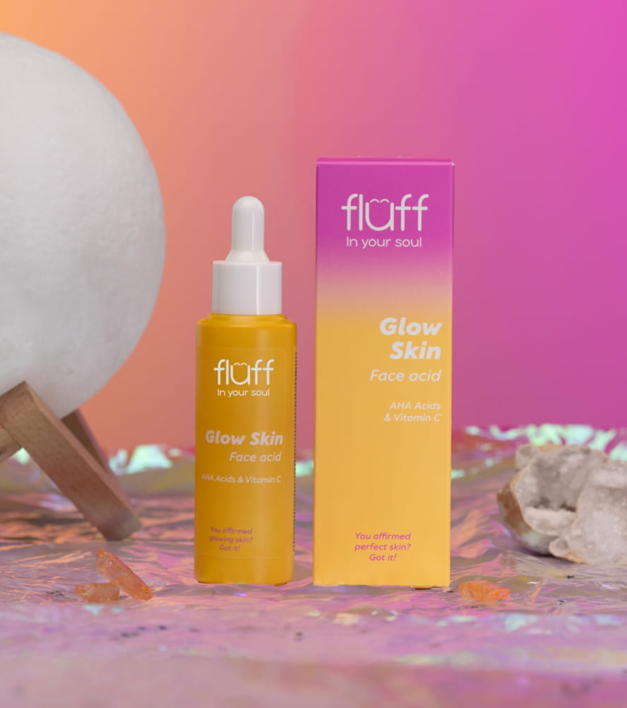 Le Peeling Éclaircissant à la Vitamine C Glow Skin de Fluff exfolie en douceur l'épiderme tout en hydratant et en illuminant le visage, le laissant éclatant et frais.