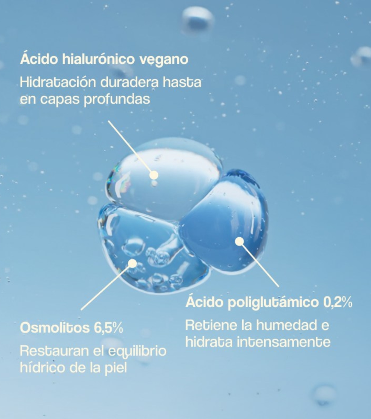 Sa formule légère de type gel rafraîchit instantanément la peau et aide à retenir l'hydratation jusqu'à quatre fois plus longtemps que l'acide hyaluronique, grâce à l'action du PGA, un puissant polymère naturel dérivé de la fermentation du soja.