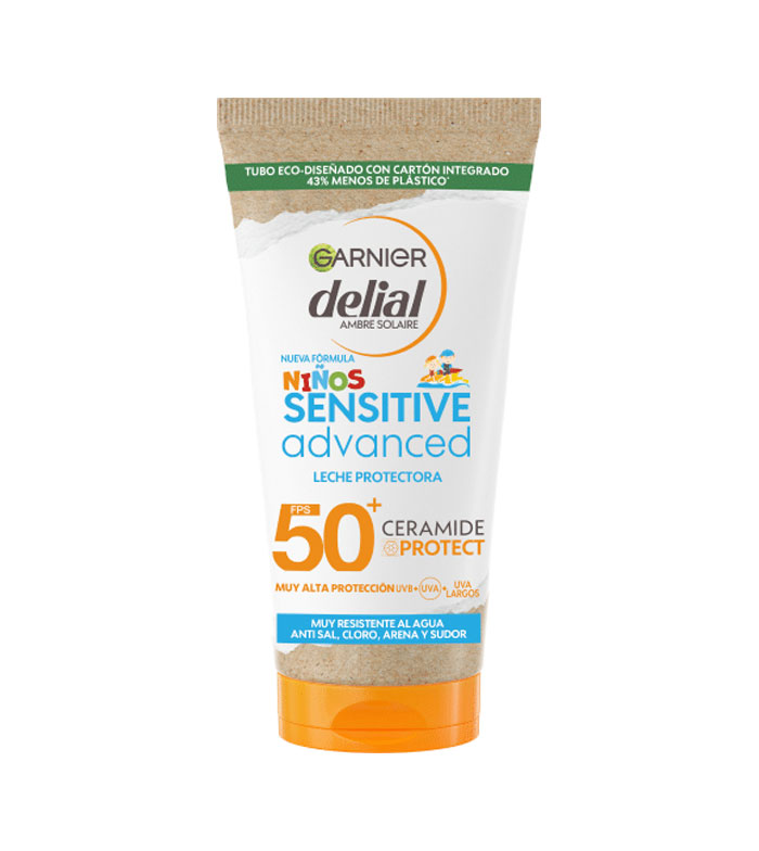 Lait protecteur hypoallergénique Sensitive Advanced Niños SPF50+ de Garnier Delia l à haute protection pour les peaux les plus sensibles.