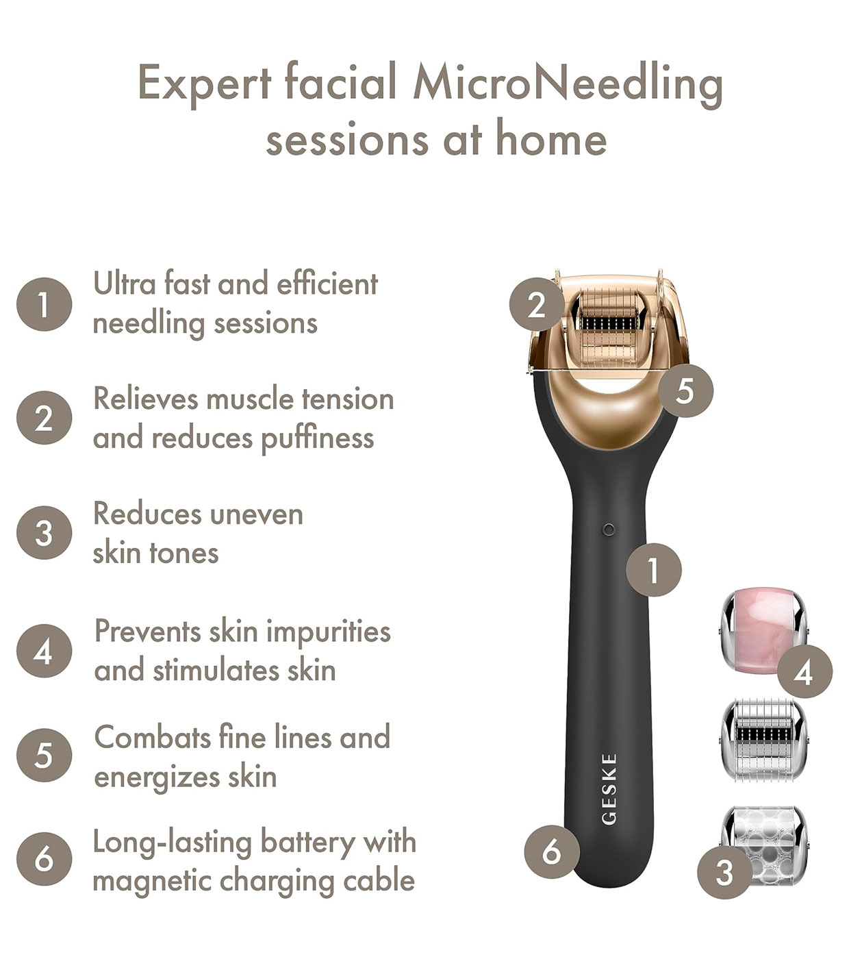 Obtenez des résultats de spa à la maison sans les coûts d'un traitement en clinique. Notre MicroNeedle Face & Body Roller | 9 en 1 dispose de trois accessoires interchangeables : microneedling, refroidissement et quartz rose.