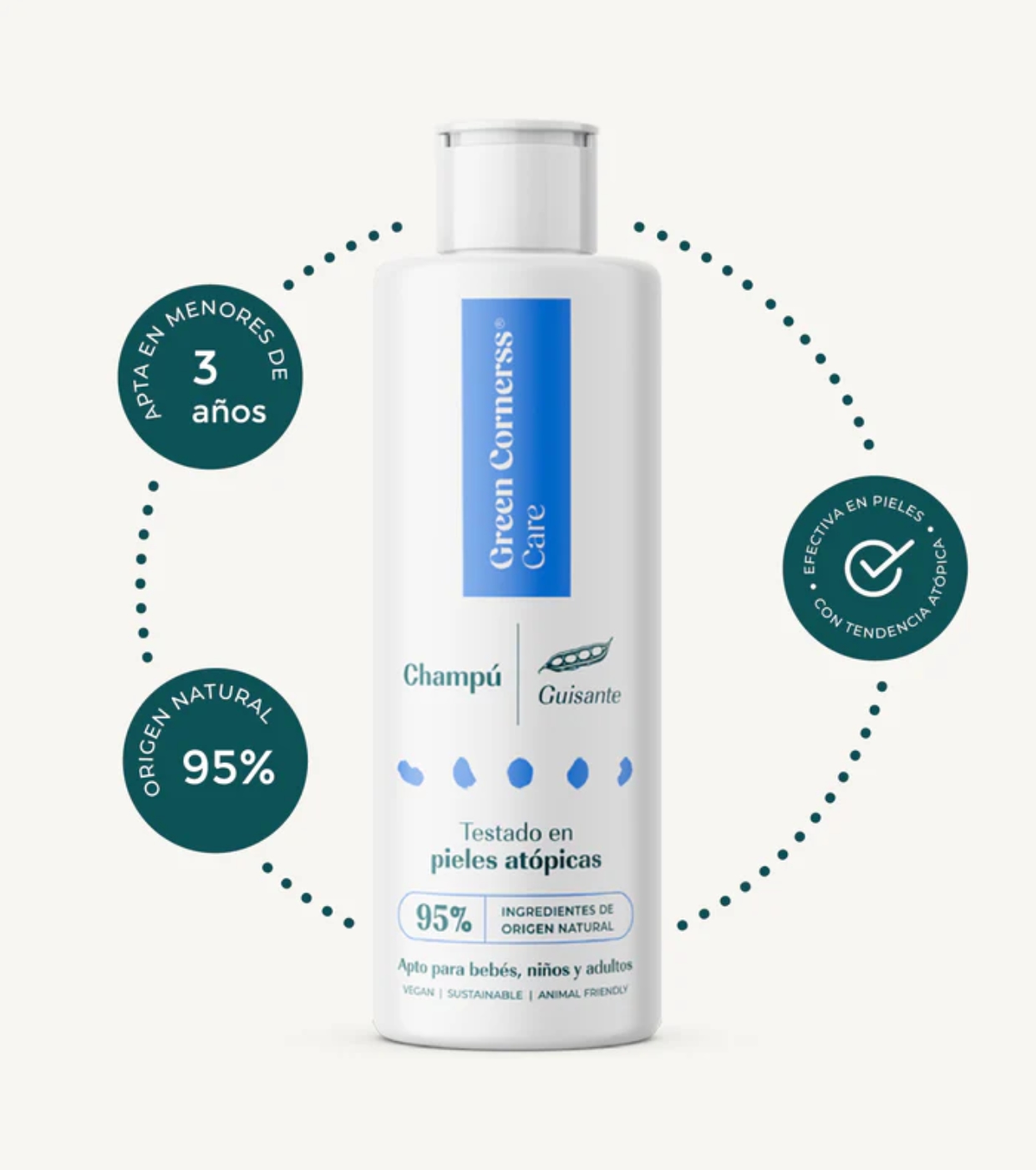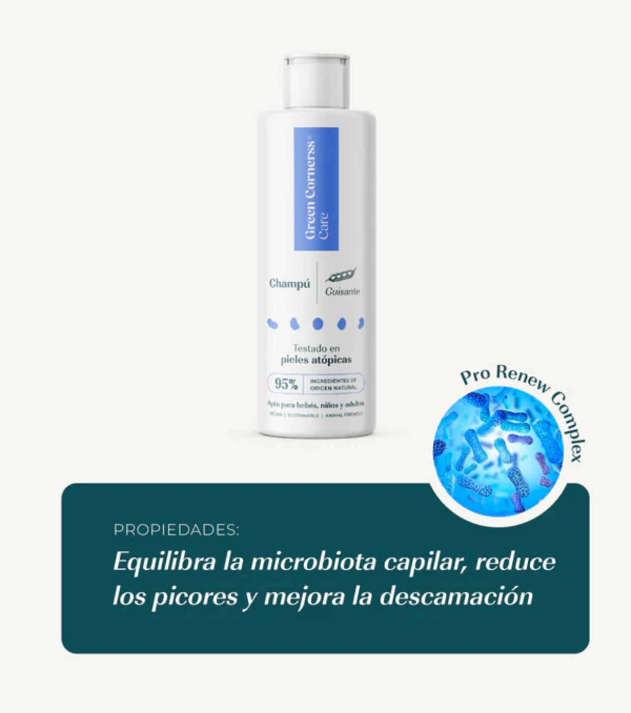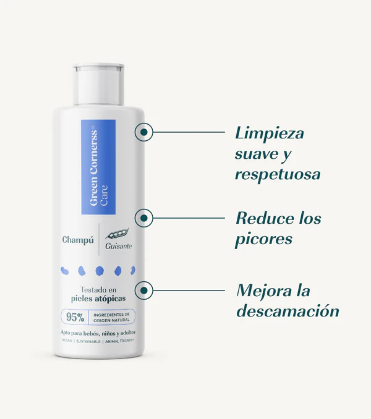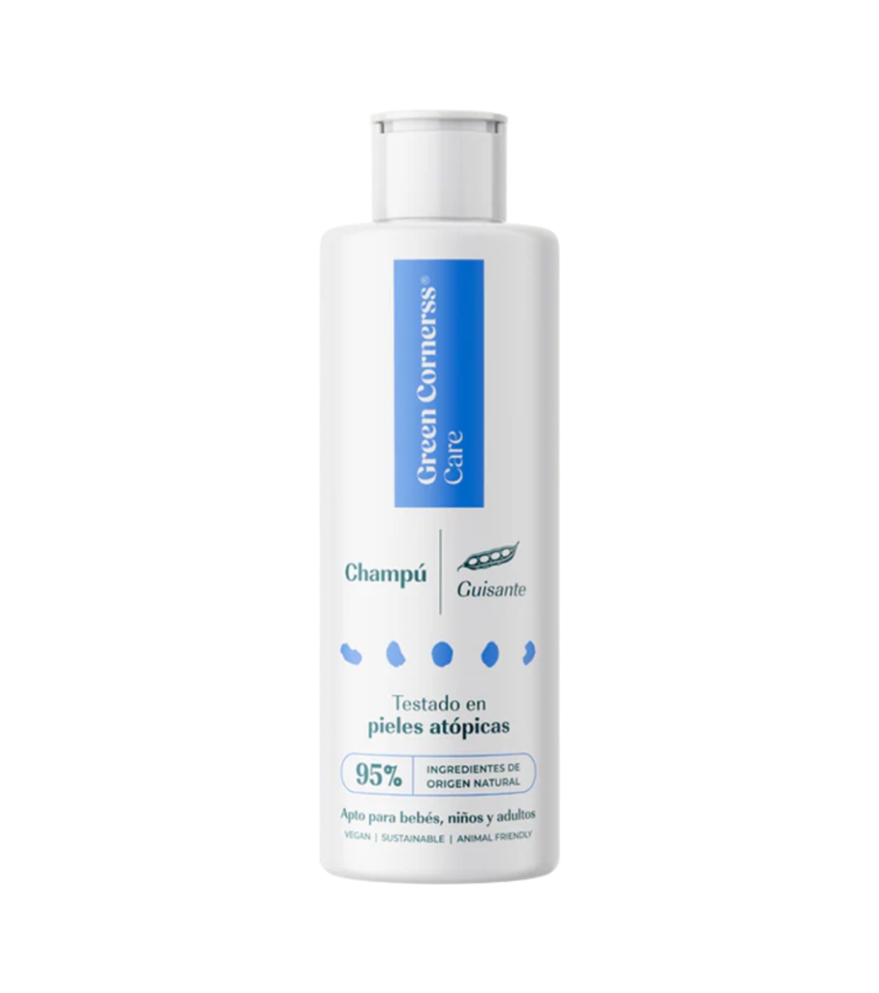 Green Cornerss Le shampooing aux pois pour cuir chevelu sensible a été formulé avec un mélange d'agents nettoyants doux à base de protéines de pois, offrant un nettoyage en douceur sans irriter le cuir chevelu.