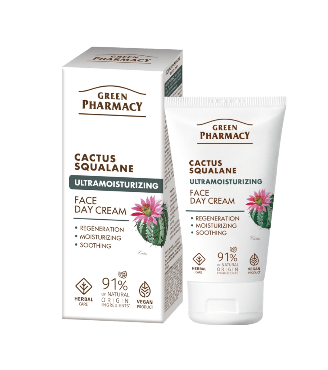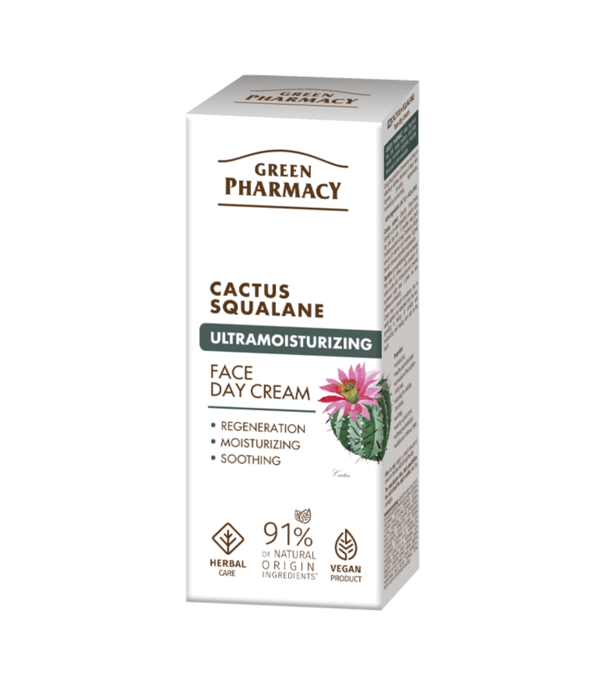 Green Pharmacy La Crème Visage Jour Ultra-Hydratante Cactus + Squalane se distingue par sa texture douce et facile à appliquer, qui pénètre rapidement sans laisser de sensation grasse.