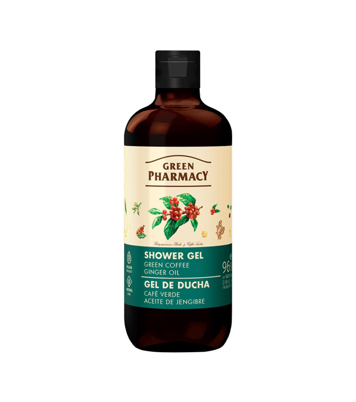 Gel douche à l'huile de café vert et de gingembre de Green Pharmacy.