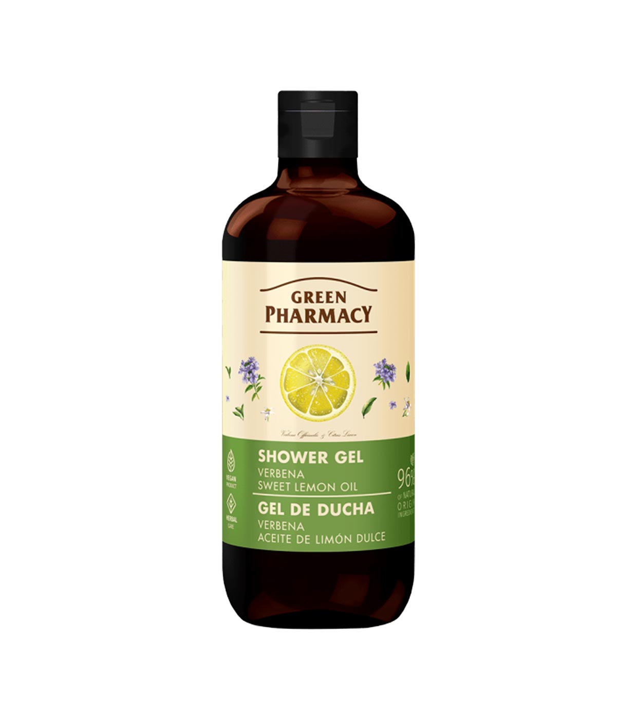 Gel douche à l'huile de verveine et de citron doux par Green Pharmacy.