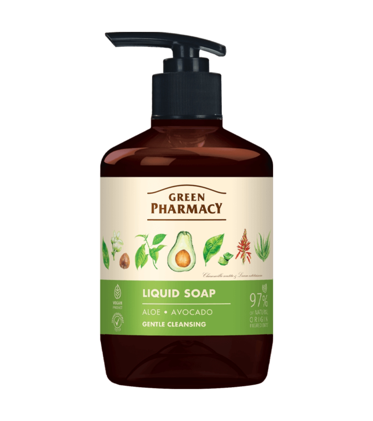 Green Pharmacy Le Savon Liquide Mains Aloe Vera et Avocat assure un nettoyage doux et efficace, respectant l'équilibre naturel de la peau.