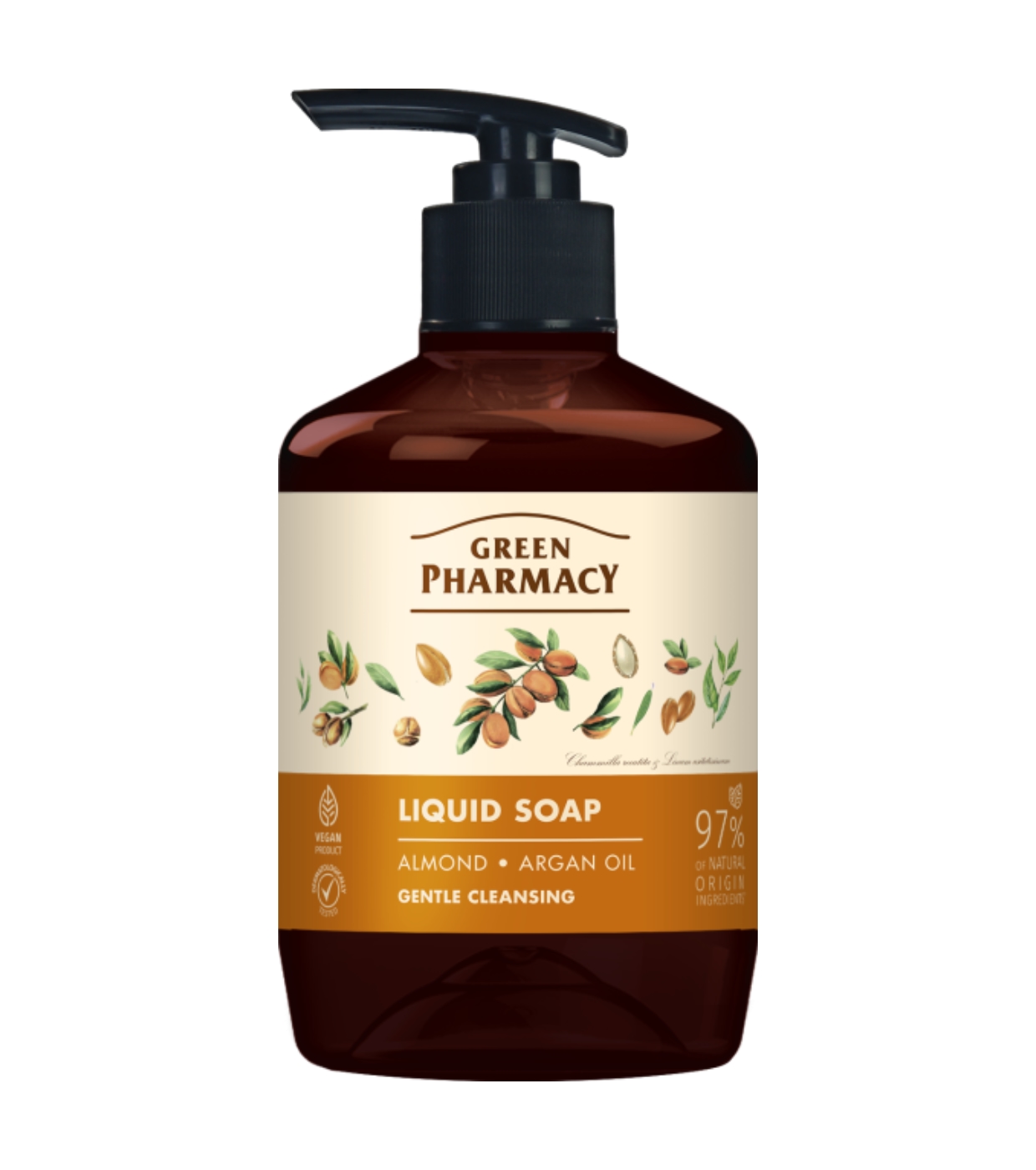 Profitez d'un nettoyage délicat et nourrissant avec le savon liquide pour les mains aux Amandes et à l'Huile d'Argan de Green Pharmacy , idéal pour le soin quotidien de la peau.