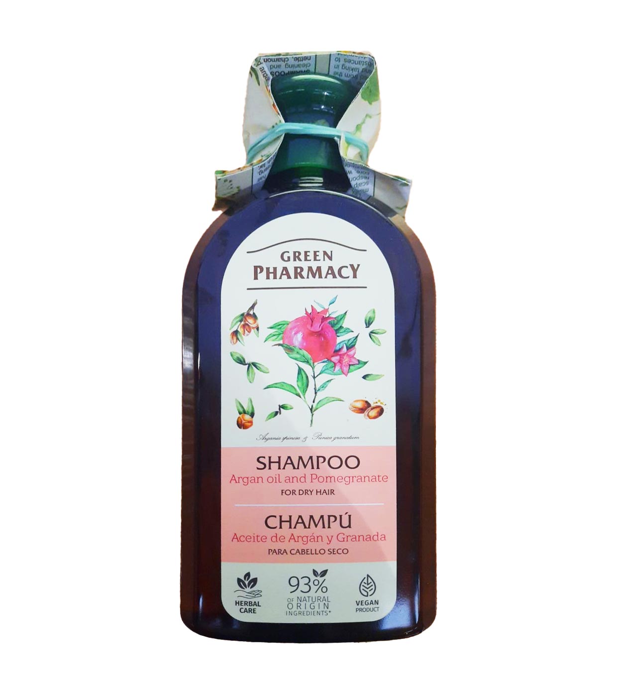 Shampooing pour cheveux secs à l'arganier et à la grenade de Green Pharmacy.