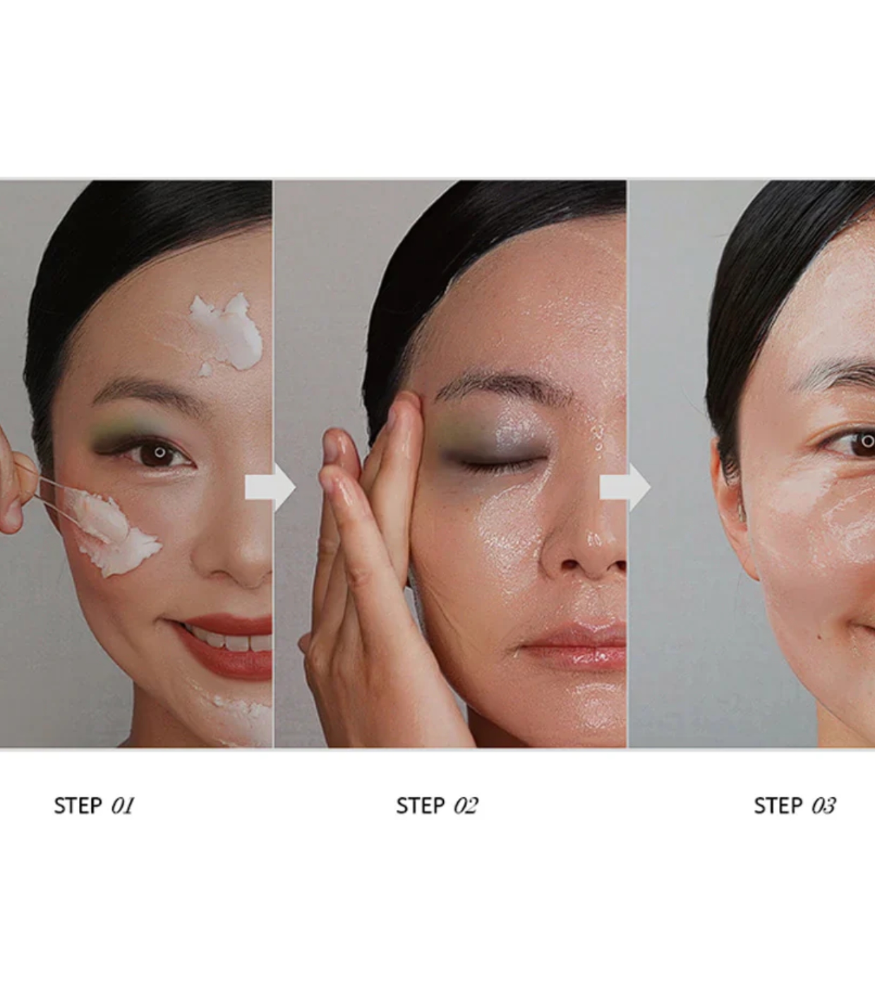 1. Déposez une quantité modérée de produit sur peau sèche et massez délicatement pendant au moins 30 secondes.