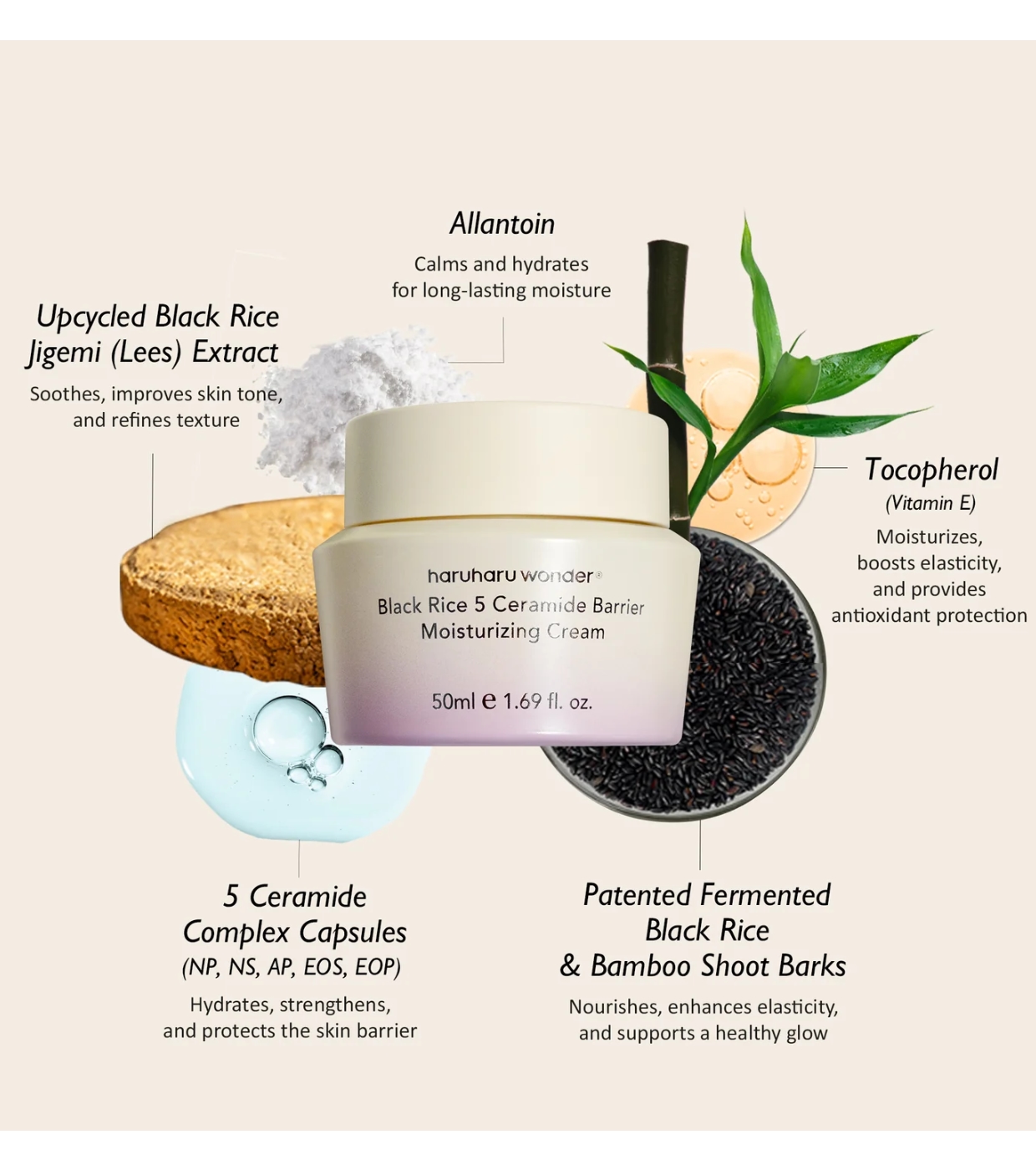 Profitez d'un soin du visage luxueux avec cette crème hydratante pour le visage Black Rice 5 Ceramide Barrier de Haruharu Wonder enrichie en capsules de céramide qui renforcent la barrière cutanée et procurent une hydratation intense et durable.