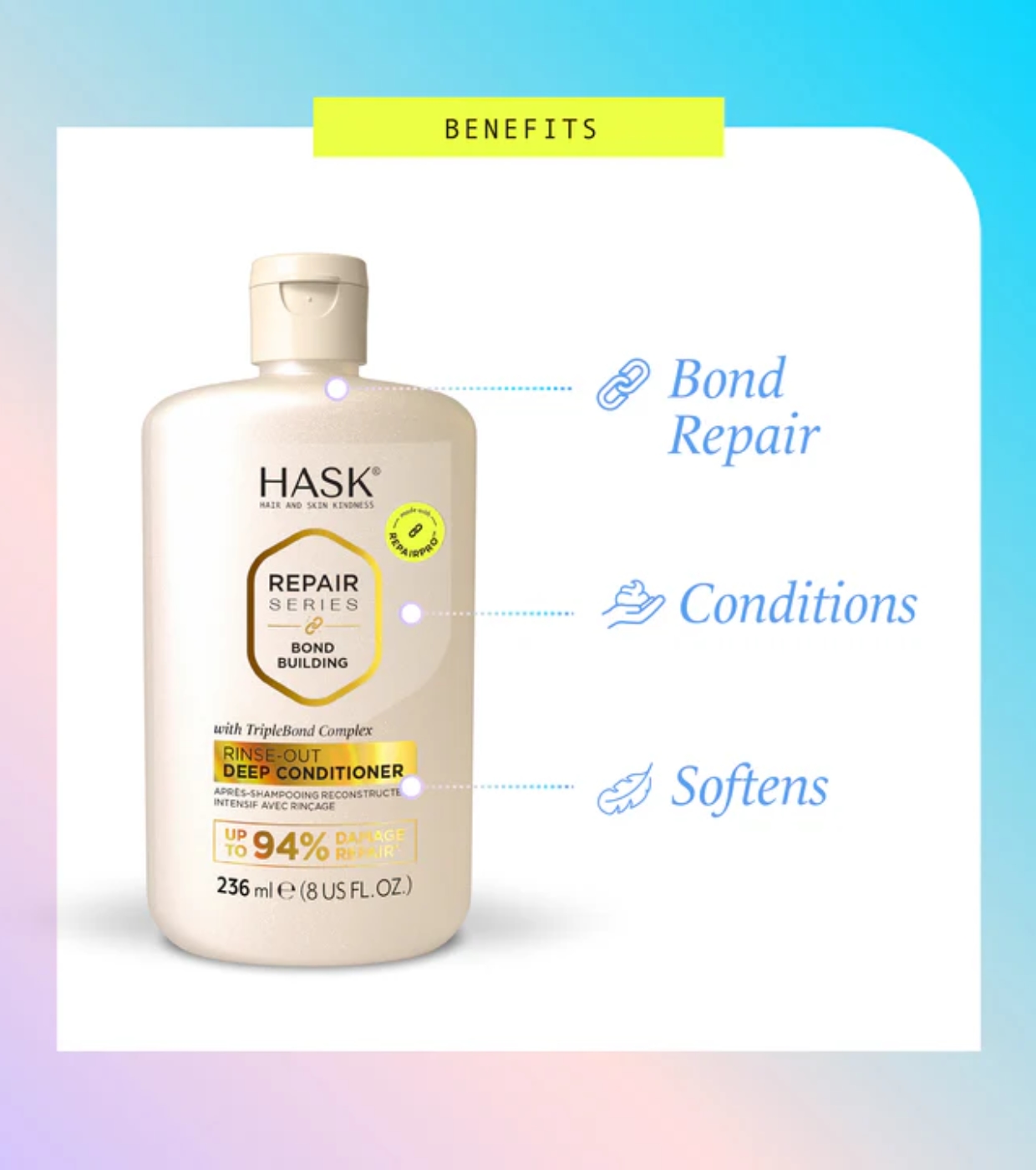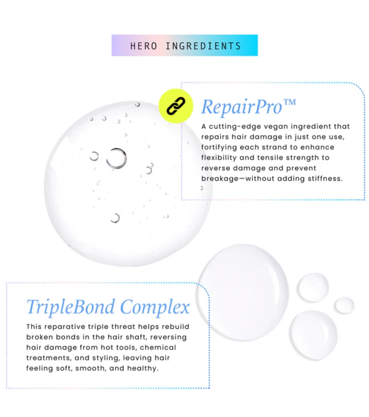 - Technologie RepairPro™ + Complexe Triple Bond™ pour réparer les liaisons capillaires.