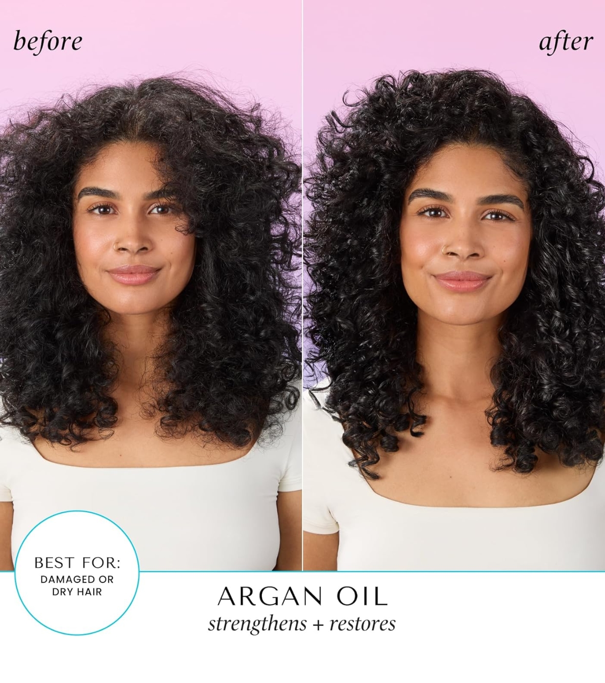 Formulé avec de l'huile d'argan hydratante, cet après-shampooing pénètre dans la tige du cheveu, adoucit et démêle en douceur tout en protégeant des dommages et des bris, pour des cheveux soyeux et ultra brillants.