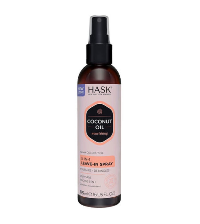 Le spray sans rinçage 5 en 1 de Hask protège les cheveux des dommages thermiques.