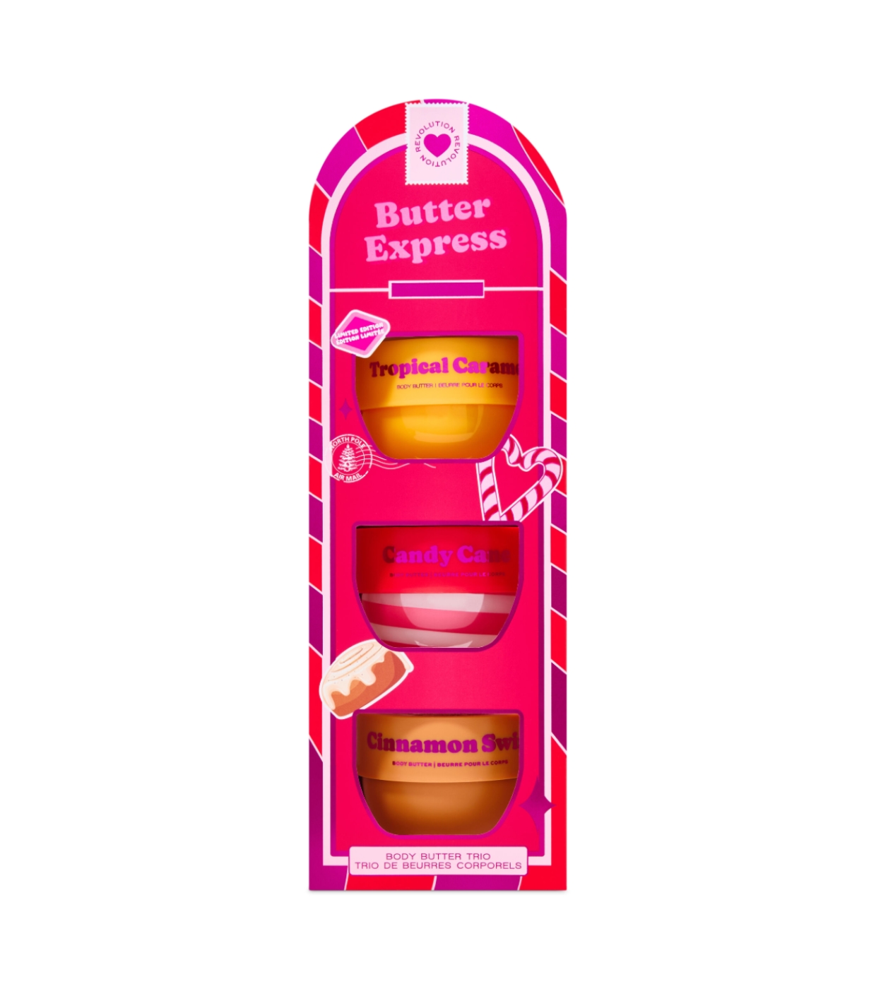 Chouchoutez votre peau avec le I Heart Revolution Butter Express Body Butter Set , un trio irrésistible de mini beurres corporels (68 g chacun), conçus pour hydrater en profondeur et envelopper votre peau de parfums doux et festifs.