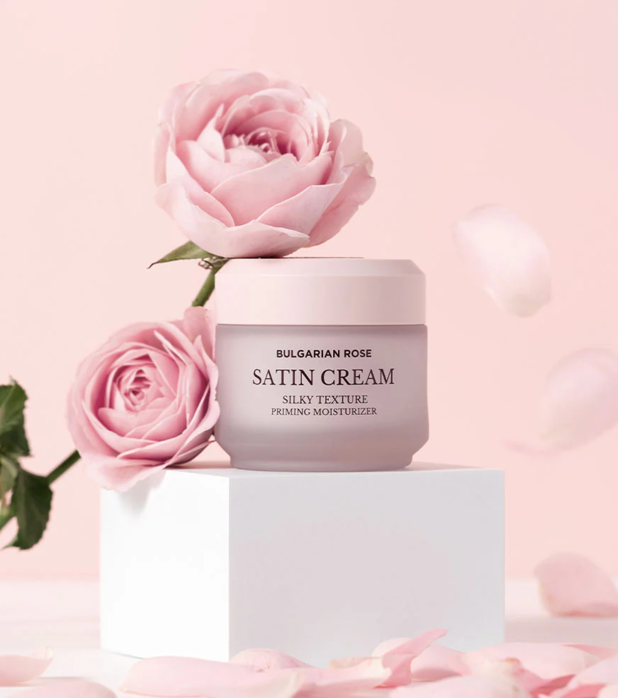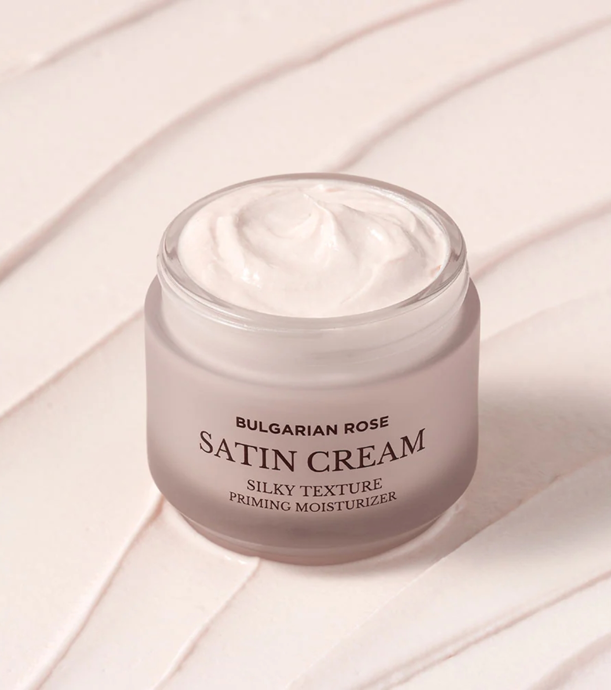 Satin Cream La crème hydratante et réparatrice Satin Cream à l'eau de rose de Damas est un soin exfoliant et nourrissant doux qui agit comme une base et un booster d'hydratation pour les peaux sèches, ternes ou squameuses.