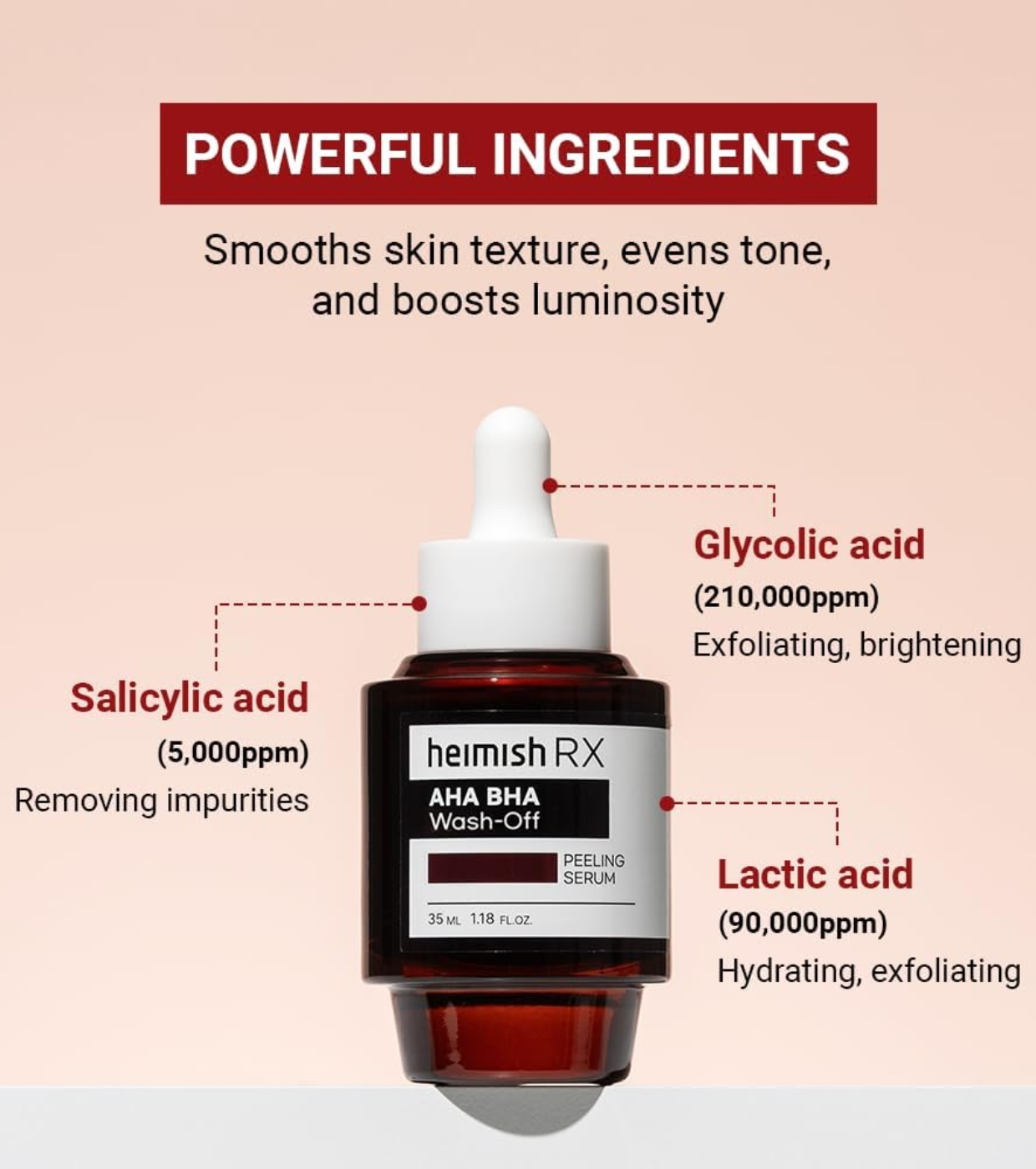 Water, Glycolic Acid (210,000ppm), Lactic Acid (90,000ppm), Sodium Hydroxide, Propanediol, Pentylene Glycol, Salicylic Acid (5,000ppm), Ectoin, Sodium Hyaluronate, Hydroxypropyltrimonium Hyaluronate, Potassium Hyaluronate, Hydrolyzed Hyaluronic Acid, Hyaluronic Acid, Sodium Hyaluronate Crosspolymer, Sodium Acetylated Hyaluronate, Panthenol, Niacinamide, Allantoin, Betaine, Monascus Extract, Gardenia Florida Fruit Extract, Hydroxyethylcellulose, Dextrin, Sodium Polyacryloyldimethyl Taurate, 1,2-Hexanediol, Hydroxyacetophenone, Tromethamine, Rosmarinus Officinalis (Rosemary) Leaf Oil, Mentha Arvensis Extract, Cymbopogon Nardus (Citronella) Oil, Lavandula Angustifolia (Lavender) Oil, Ocimum Basilicum (Basil) Oil, Litsea Cubeba Fruit Oil, C12-14 Alketh-12, Disodium EDTA.