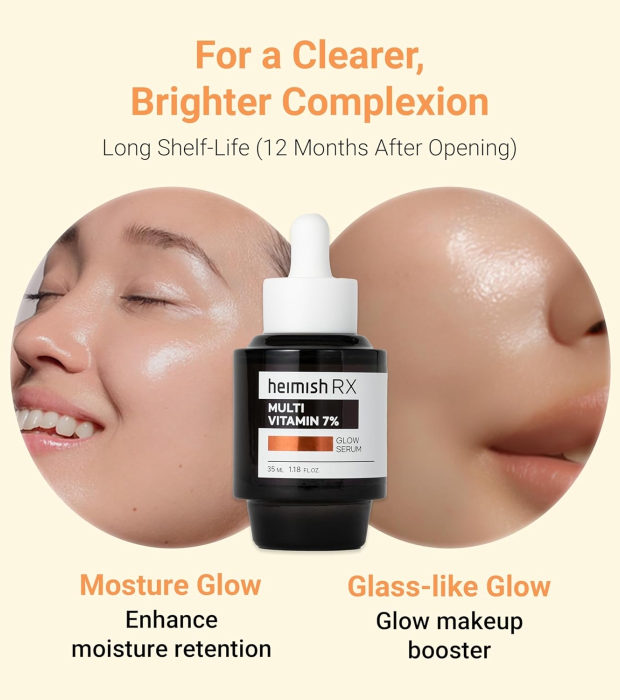 Le Heimish RX Multi Vitamin Glow Serum est un sérum éclaircissant à la vitamine C qui combine une forme avancée et stable de vitamine C (acide 3-O-éthyl ascorbique) avec de la niacinamide, pour un teint plus uniforme, plus éclatant et plus sain.