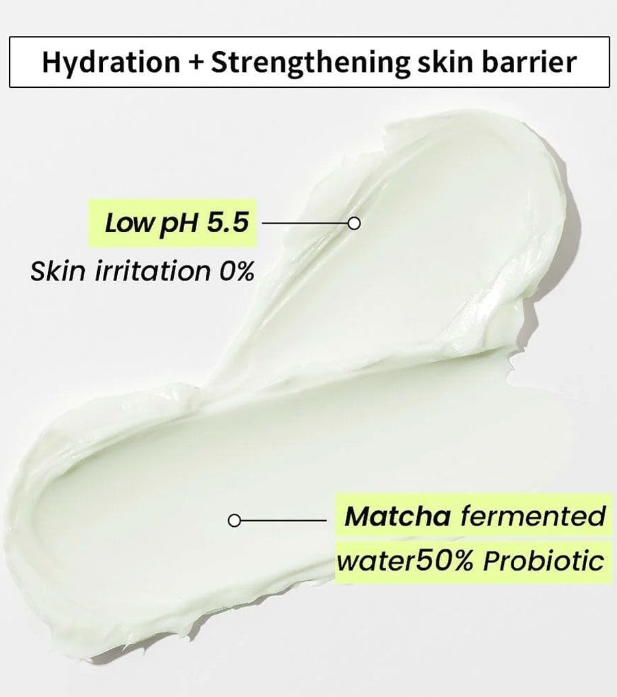 Cette crème hydratante pour le visage au matcha et aux probiotiques est l'alliée parfaite pour celles qui recherchent une peau plus calme, plus hydratée et plus saine jour après jour.
