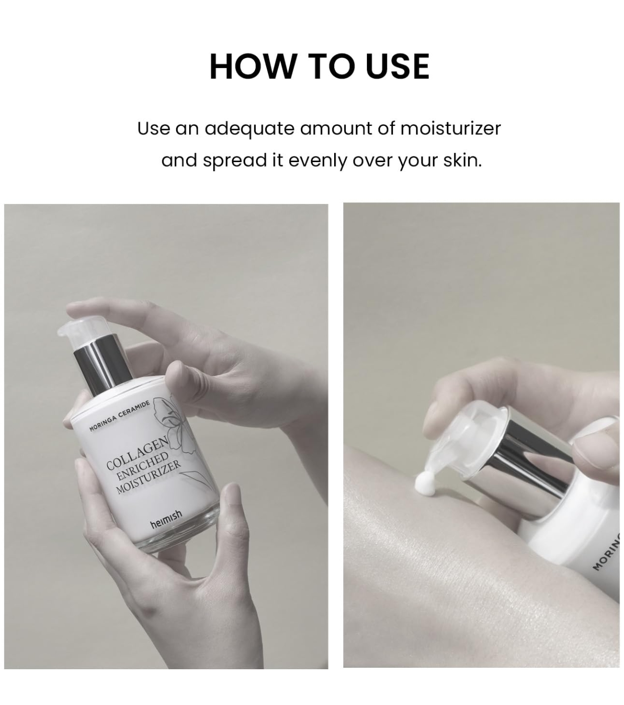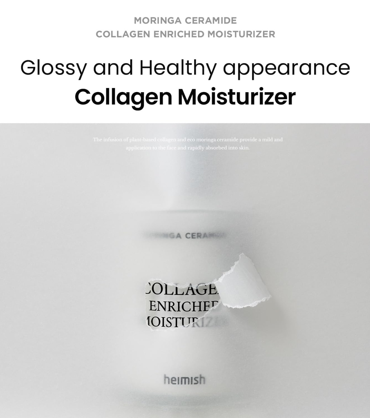 Découvrez la crème visage Heimish Heimish avec du céramide de moringa et du collagène d'origine végétale, qui crée une apparence lumineuse et saine.