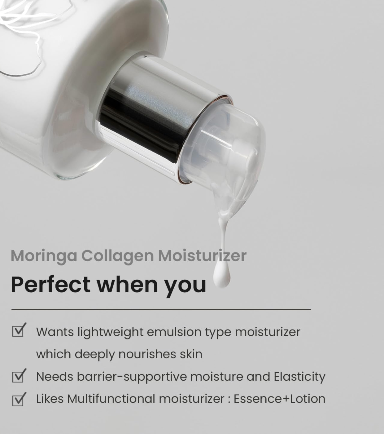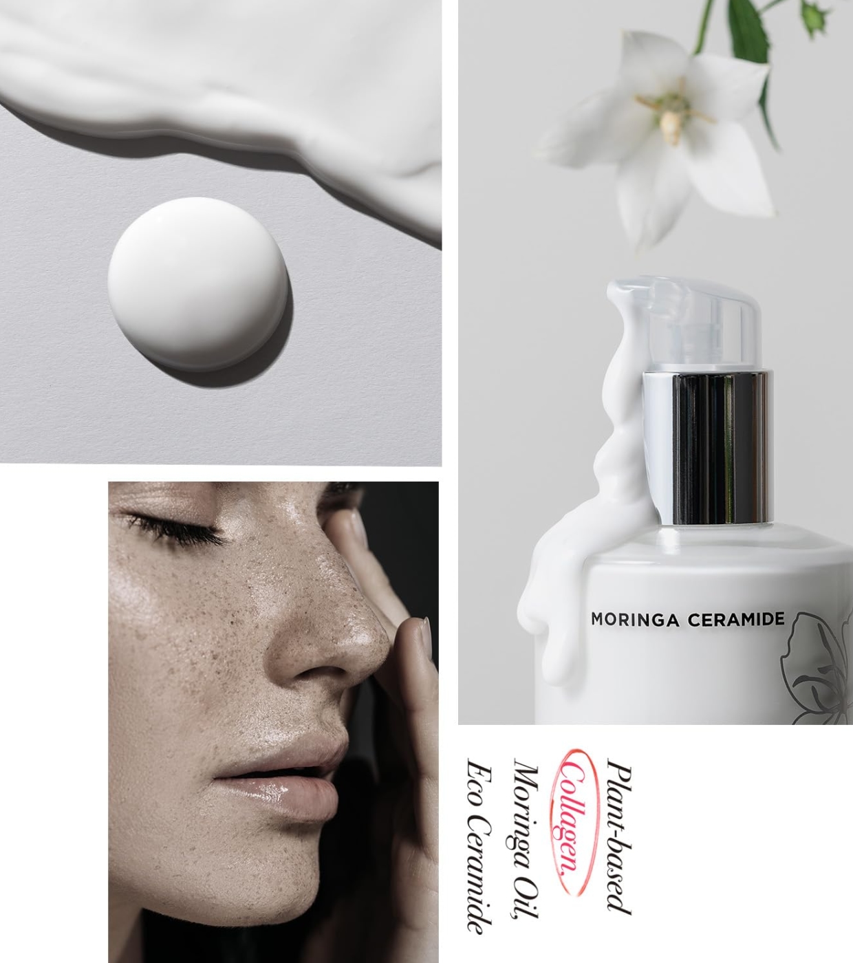 Un hydratant au collagène d'origine végétale et au céramide de moringa biologique crée un teint éclatant et sain tout en nourrissant et raffermissant la peau en profondeur.
