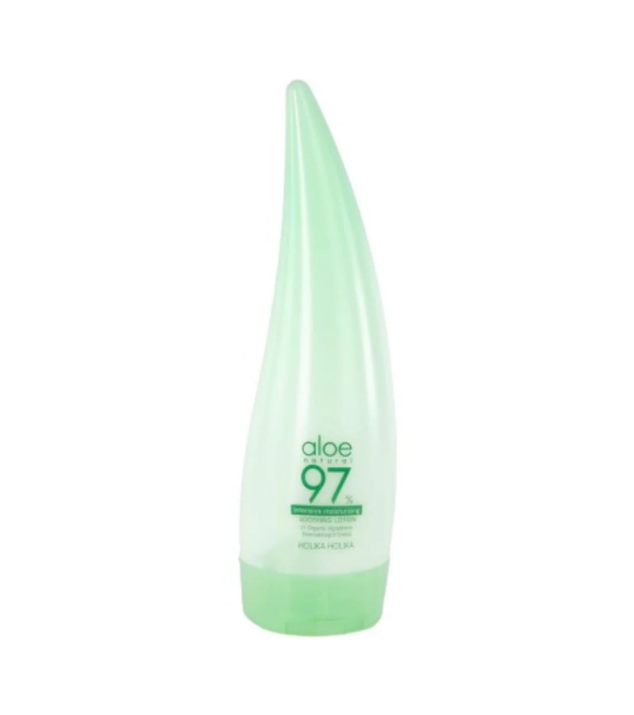 Holika Holika Aloe Natural Formula 97% Soothing Lotion est une lotion légère à absorption rapide formulée avec 97% d'aloe vera naturel, idéale pour hydrater, apaiser et régénérer la peau.