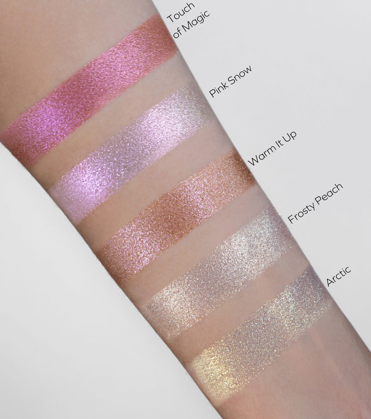 Mica, Talc, Ethylhexyl Palmitate, CI 77891, Polyethylene Terephthalate, Caprylic/Capric Triglyceride, Calcium Aluminum Borosilicate, Synthetic Fluorphlogopite, CI 45410, Bis-Diglyceryl Polyacyladipate-2, Tridecyl Trimellitate, Dimethicone, CI 15850, Tin Oxide, Phenoxyethanol, CI 77492, Triethoxycaprylylsilane, Polyisobutene, Magnesium Stearate, Magnesium Palmitate, Tocopheryl Acetate, Ethylhexylglycerin, Cyclohexasiloxane