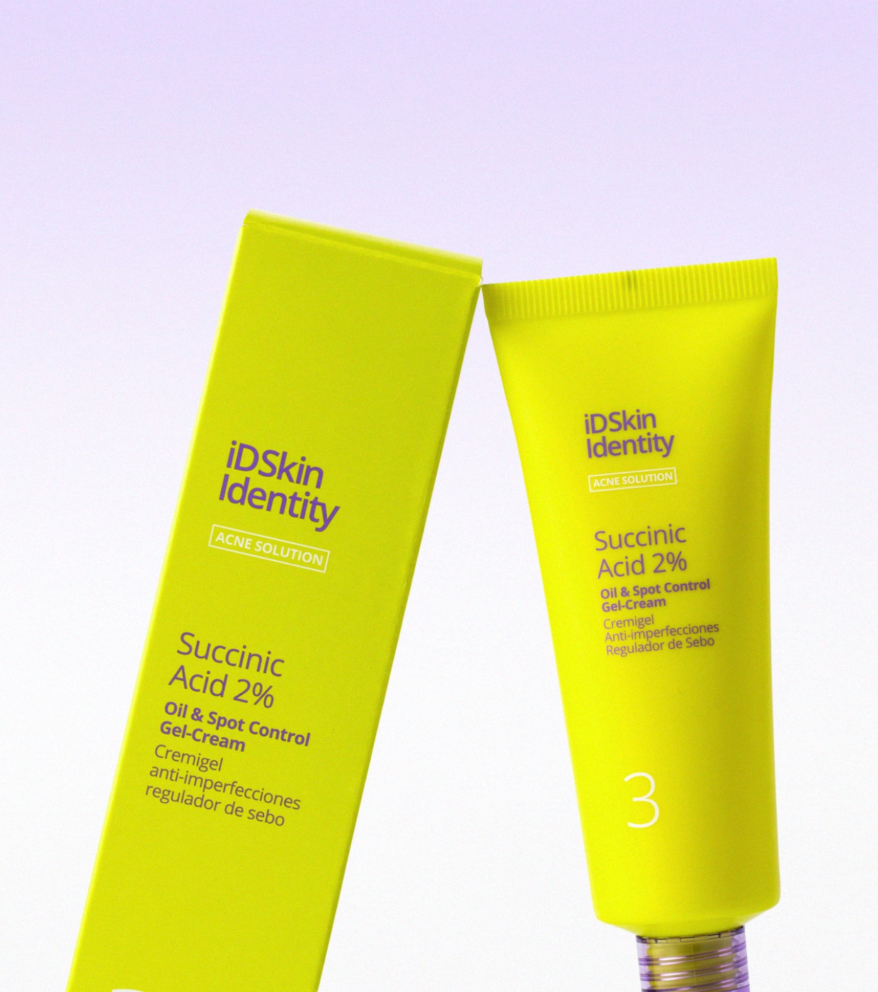 ID Skin Identity La crème visage anti-imperfections à 1 % d'acide succinique a été formulée avec une texture légère et à absorption rapide, offrant un fini mat et une hydratation équilibrée sans sensation grasse.