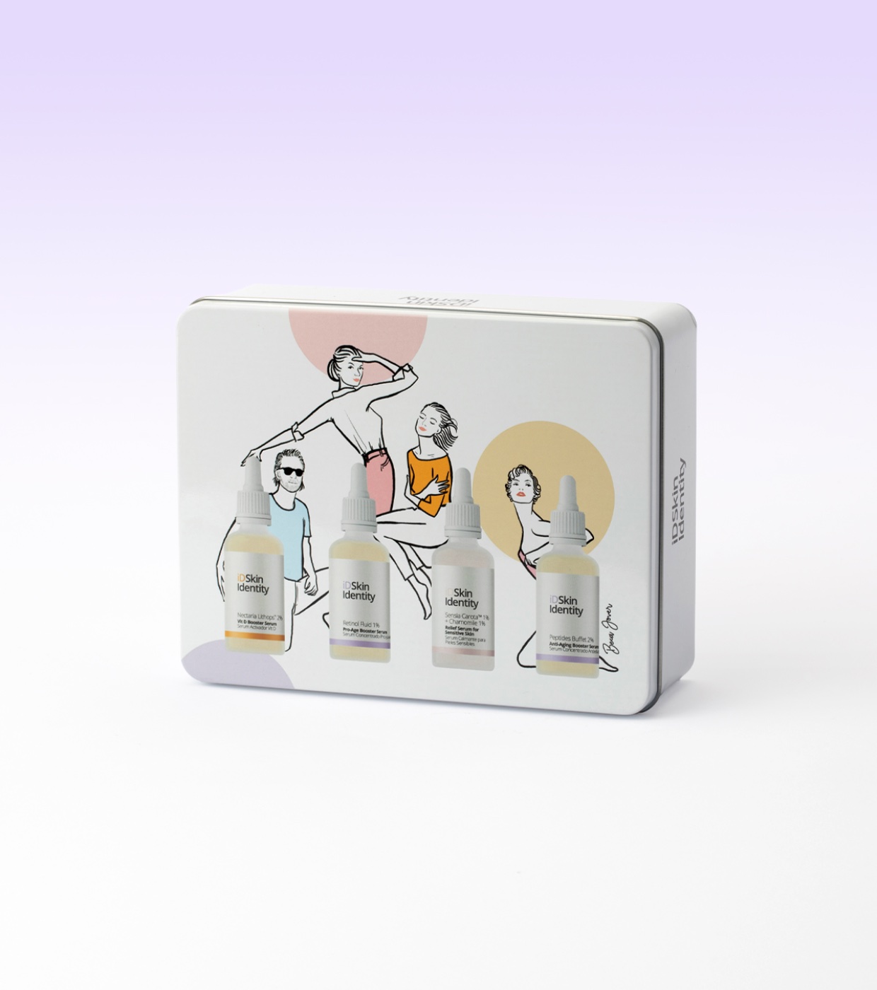 Nouvelle routine pour le soin des peaux matures d'ID Skin Identity avec quatre best-sellers de la marque, présentés dans un design unique et original créé par l'artiste Beca Jover.