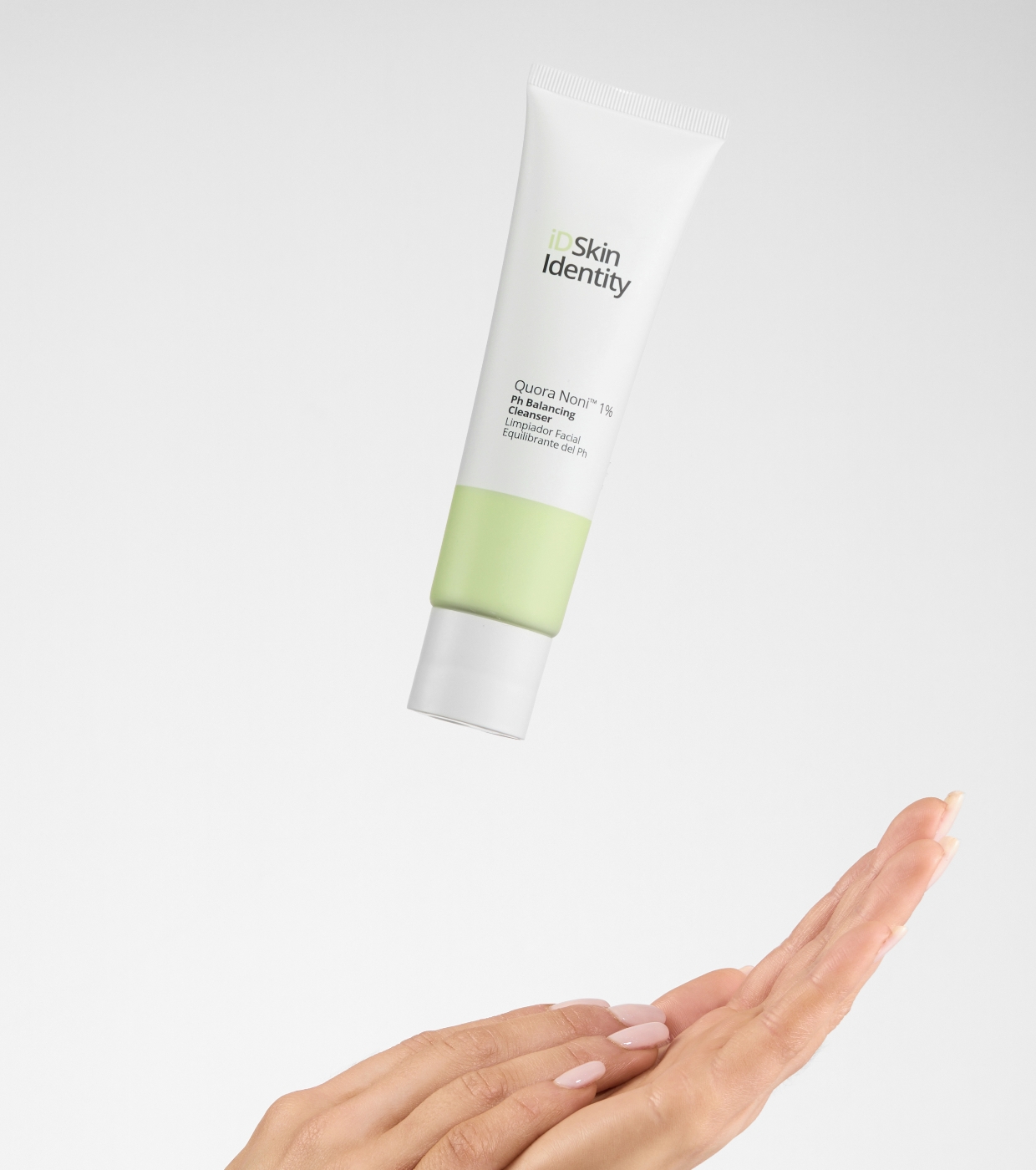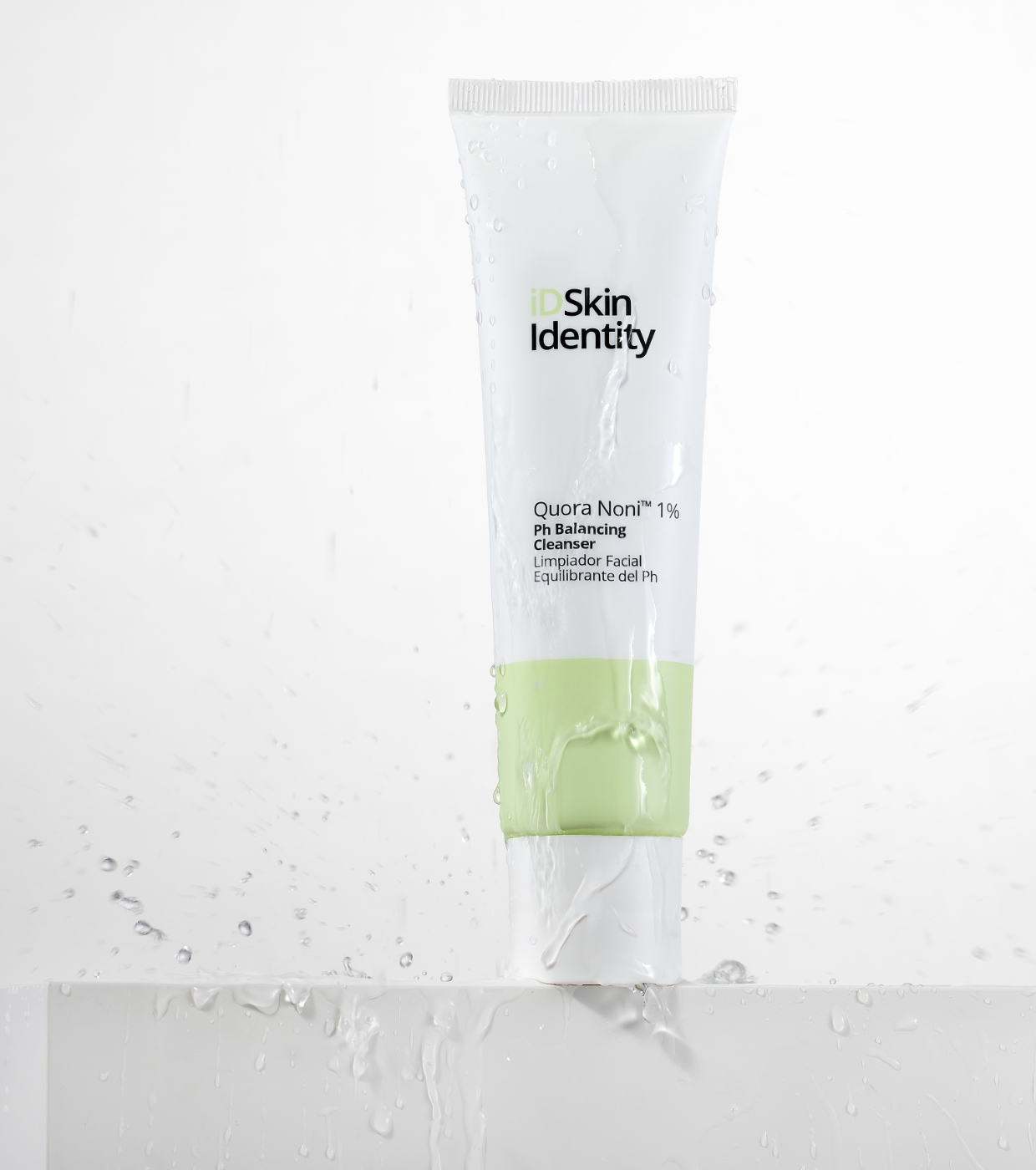 Le nettoyant équilibrant universel avec Quora Nori 1% de iD Skin Identity élimine efficacement les impuretés, l'excès de sébum et les résidus de maquillage sans dessécher ni perturber la barrière cutanée.