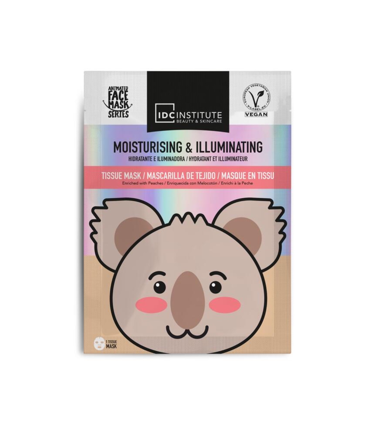 Le design ludique du koala cache un masque visage vegan hydratant et éclaircissant de l'Institut IDC, offrant un soin hydratant et éclaircissant, idéal pour lutter contre la sécheresse et améliorer la texture de la peau.