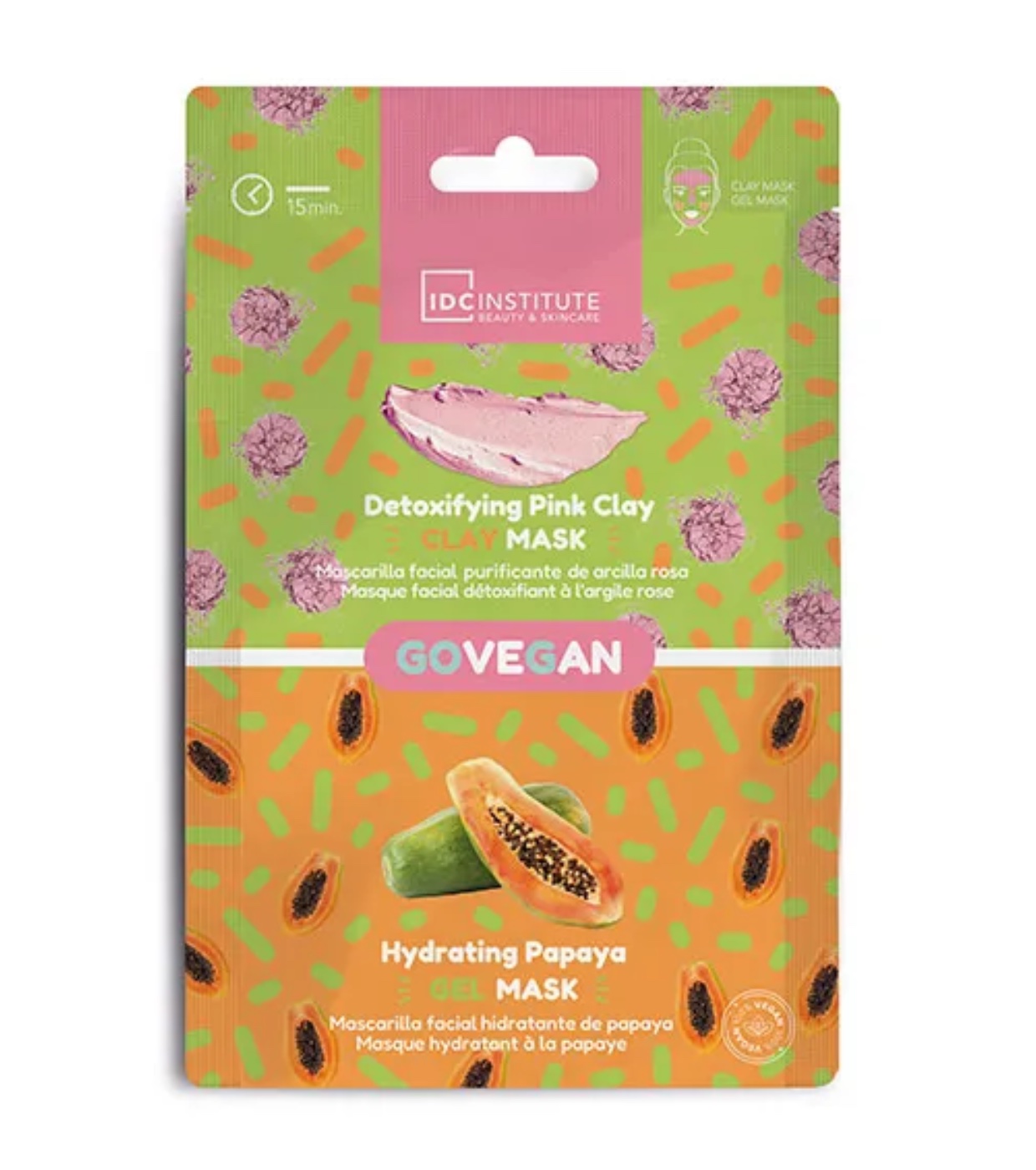 Ce masque visage 2 en 1 purifiant et hydratant à l'argile rose et à la papaye de l'Institut IDC , un duo de soins dynamique pour des résultats éclatants.