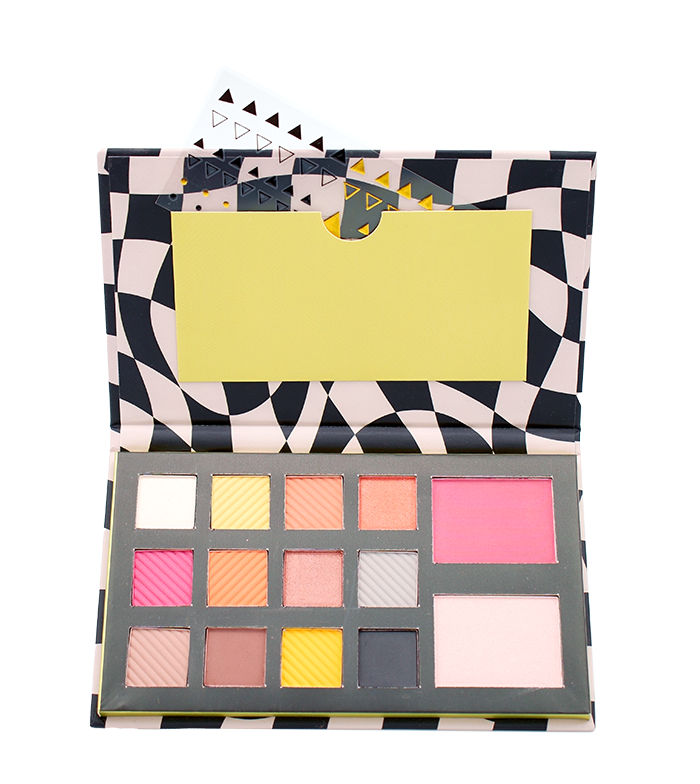 Elle contient également un fard à joues et un enlumineur , qui font de cette palette un indispensable de votre sac de voyage.