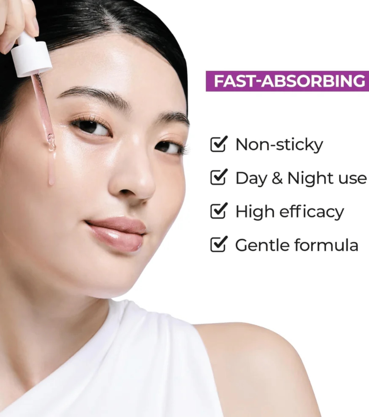 Après avoir nettoyé et tonifié votre peau, appliquez quelques gouttes de sérum uniformément sur votre visage.