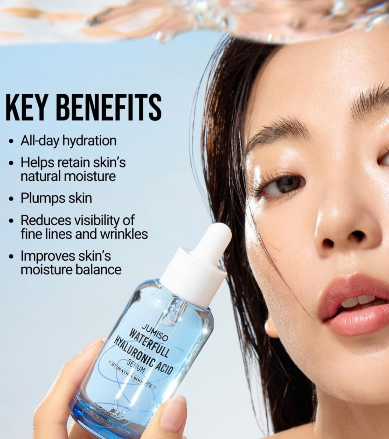 Le sérum hydratant pour le visage Hyaluronic Acid Jumiso est formulé avec du complexe d'acide hyaluronique 3, du panthénol et du CeraPresso™ pour apaiser la peau, reconstituer l'hydratation et renforcer sa barrière naturelle.