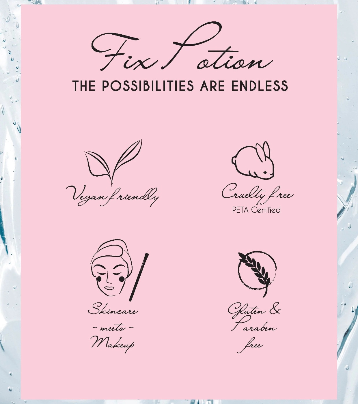 Fix Potion est une base gel légère, soyeuse et cristalline avec une finition semi-mate qui garantit que vos reflets, pigments et fards à paupières restent en place pendant des heures.