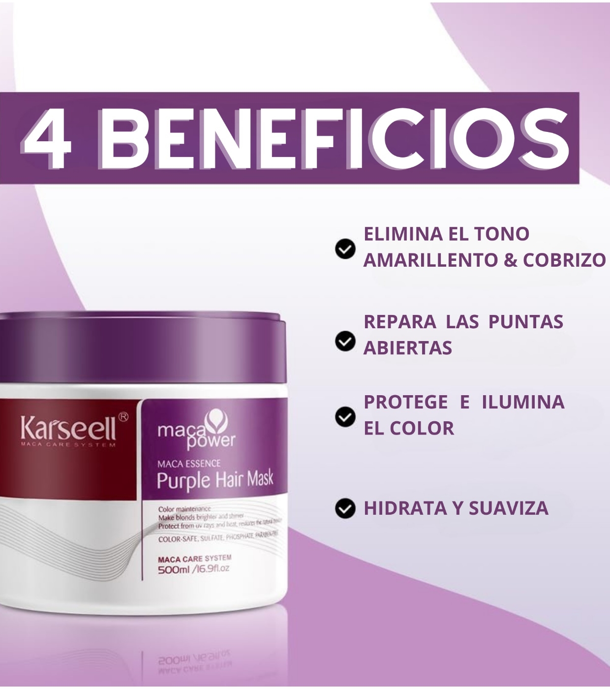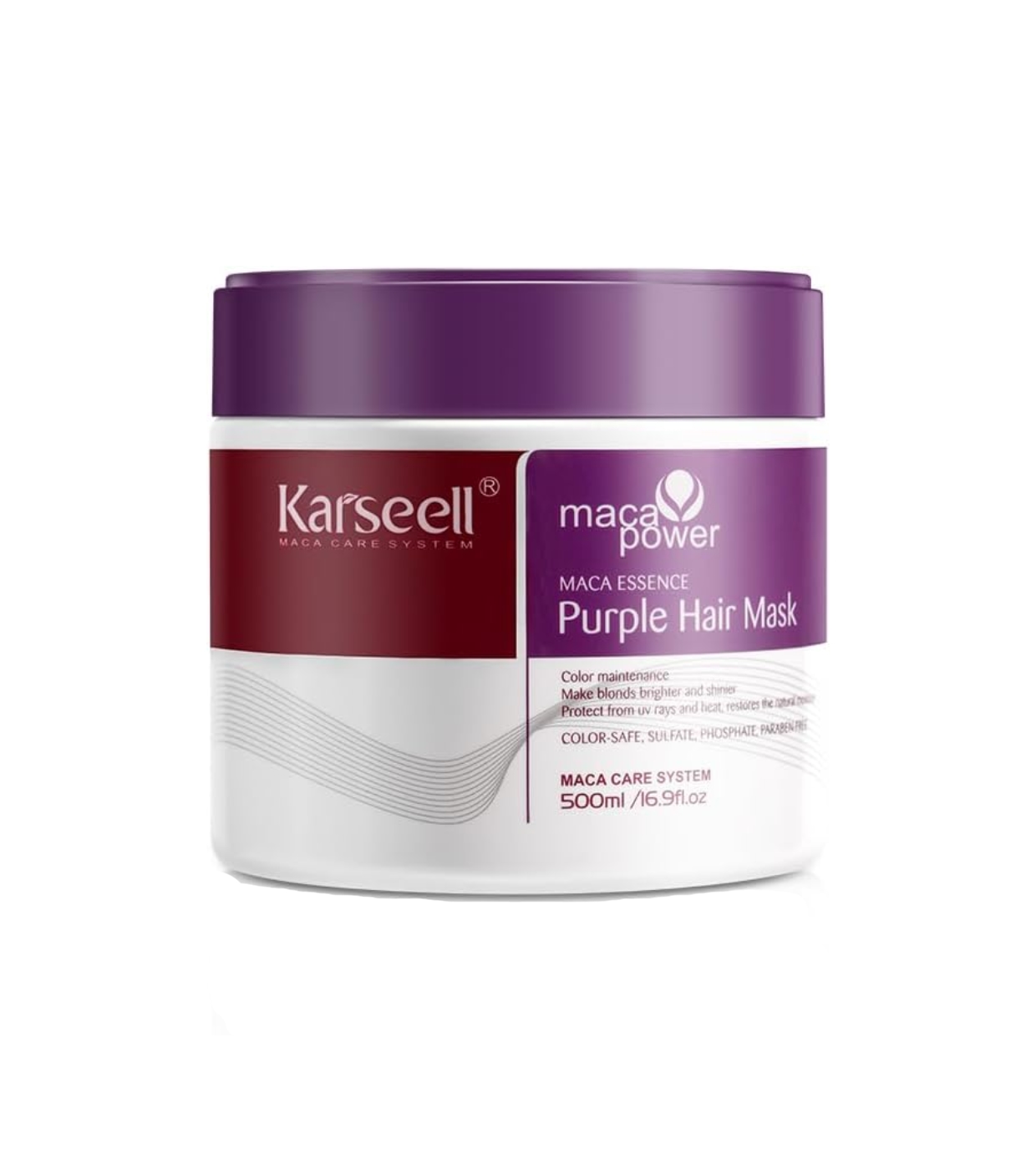 Le Karseell Purple Mask est un masque capillaire professionnel conçu pour neutraliser les tons jaunes et cuivrés indésirables des cheveux blonds, décolorés, argentés ou gris.