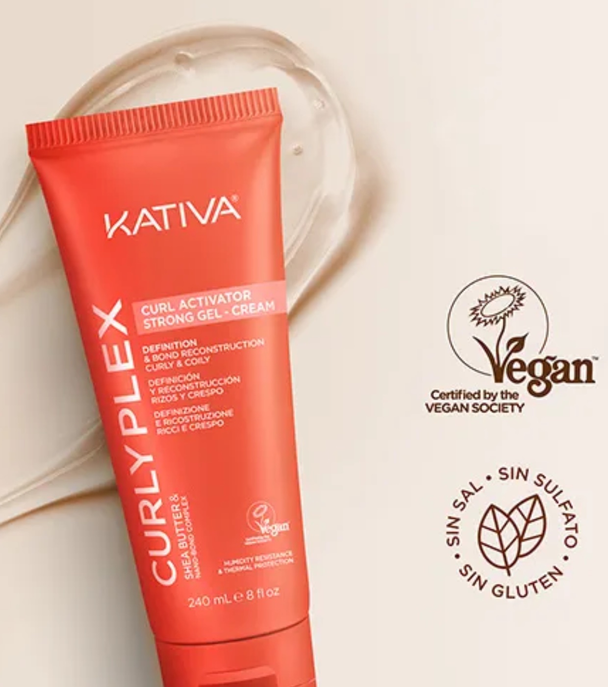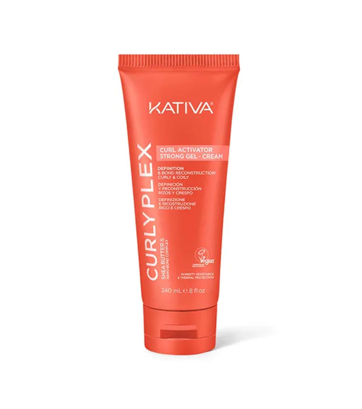Le gel-crème activateur de boucles Strong de Kativa est conçu pour contrôler et définir instantanément les boucles sans alourdir les cheveux ni leur donner une sensation de lourdeur, même par forte humidité.
