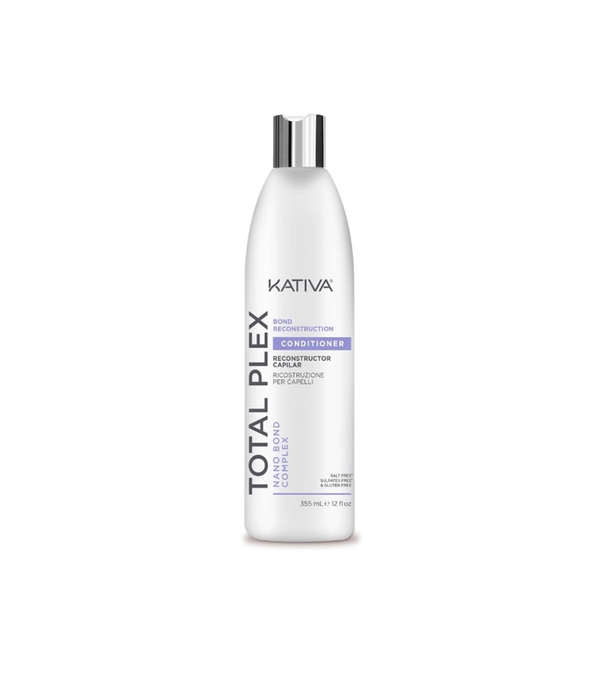 L'après-shampoing reconstructeur Total Plex de Kativa est formulé pour hydrater en profondeur et réparer les liaisons capillaires, redonnant force et douceur aux cheveux abîmés.