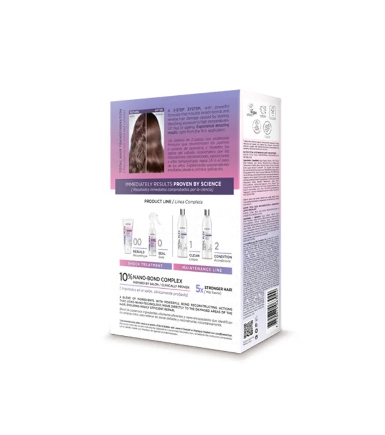 Sa formule est enrichie à 10 % du complexe NANO-BOND, une combinaison innovante d'ingrédients nanoencapsulés qui identifient les liaisons rompues, comblent les zones endommagées et reconstruisent immédiatement la fibre capillaire.