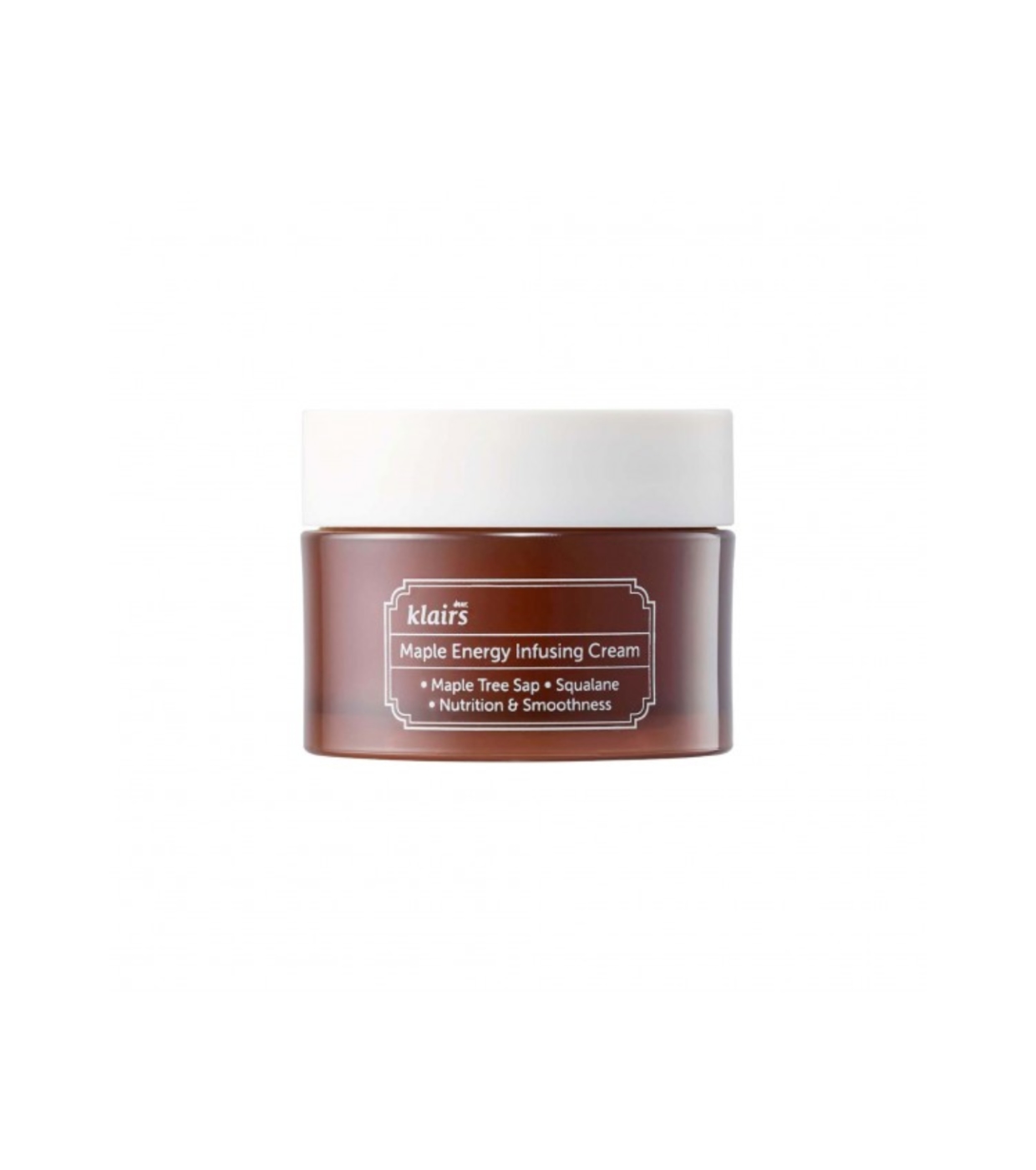 La Maple Energy Infusing Cream de Klairs est une crème hydratante légère formulée pour renforcer la barrière cutanée et améliorer l'apparence générale de la peau grâce à une combinaison soignée d'ingrédients nourrissants et protecteurs.