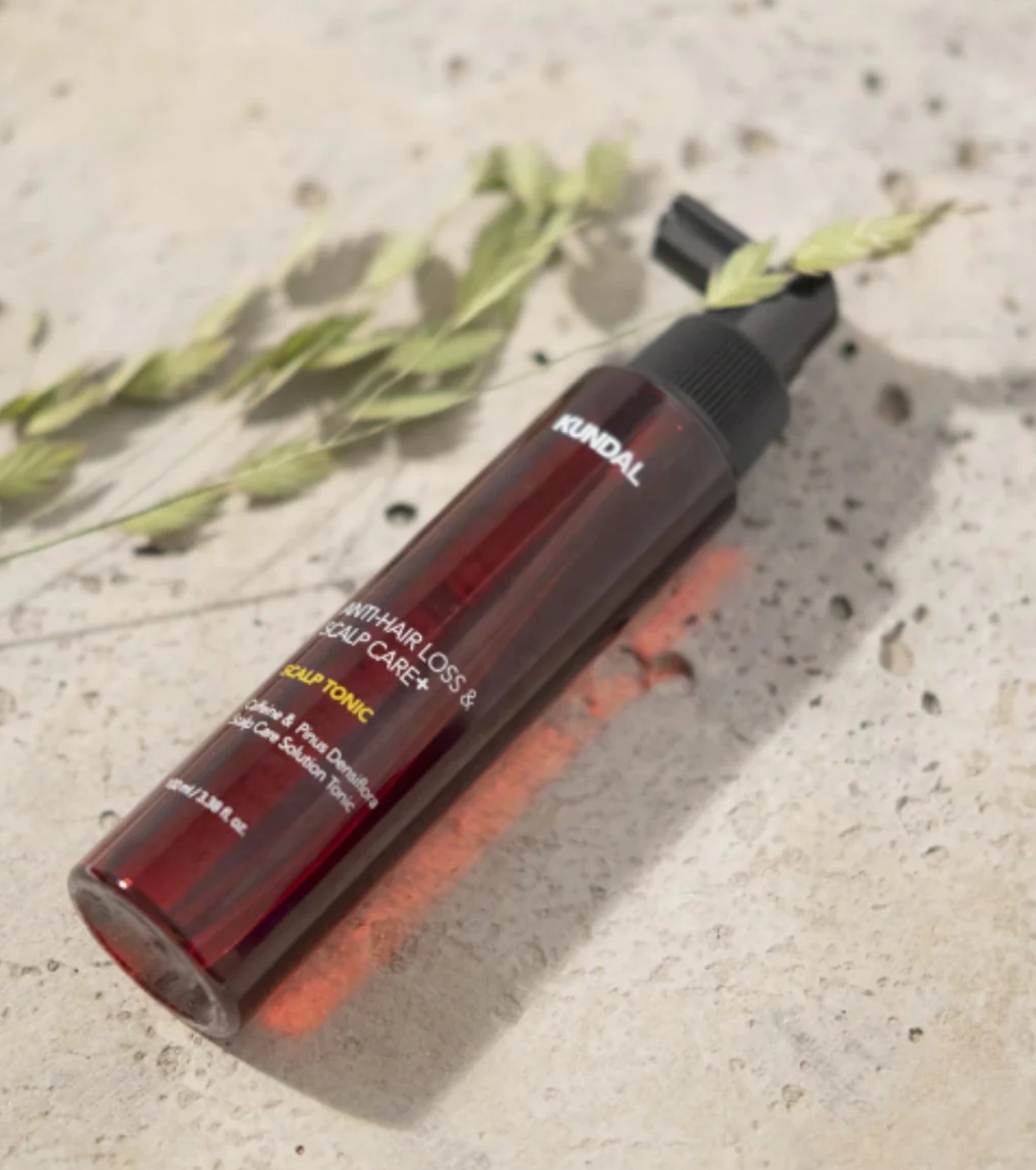 Cette lotion capillaire anti-chute Kundal est formulée à base d'extrait de caféine végétale et de haricots verts pour lutter contre la chute des cheveux et stimuler une croissance saine et vigoureuse.