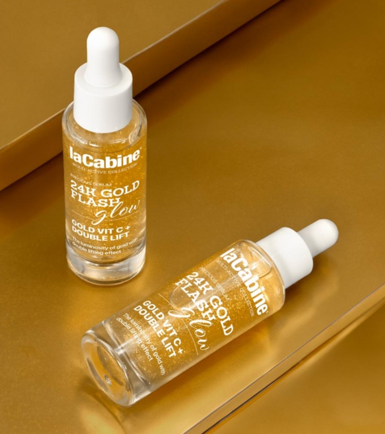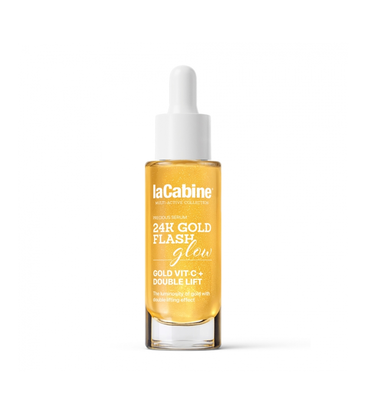 Découvrez un sérum avancé 24K Gold Flash Glow de La Cabine , conçu pour offrir un double effet liftant et un fini éclat immédiat.