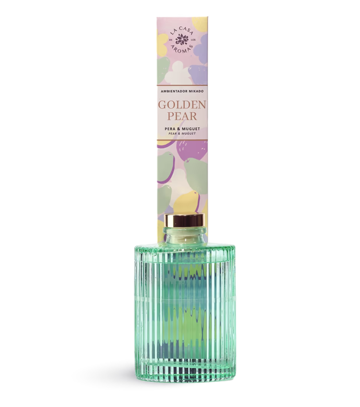 Couleur, fraîcheur et personnalité pour votre intérieur. Brandy Golden Pear de La Casa de los Aromas se distingue par son design en verre cannelé d'un vert intense ; une pièce décorative moderne et artistique qui apporte caractère et dynamisme à n'importe quel espace.