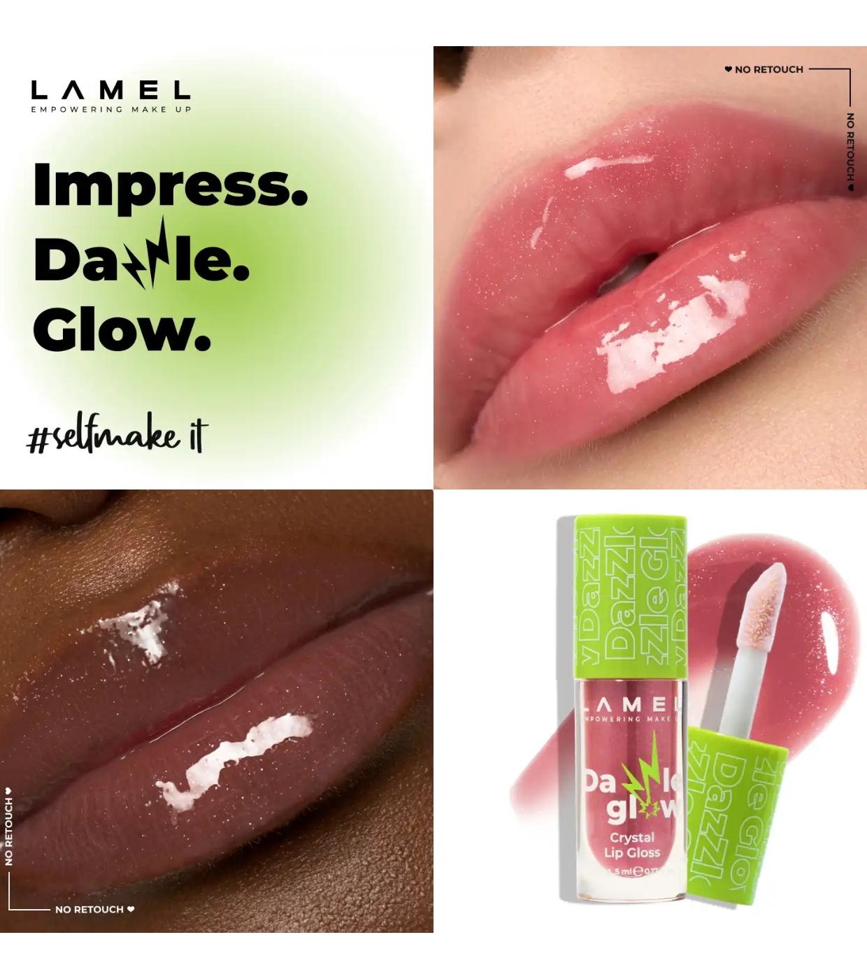 Préparez-vous pour des lèvres irrésistibles avec le Dazzle Glow Crystal Lip Gloss de Lamel , un brillant à lèvres qui rehausse instantanément n'importe quel look.