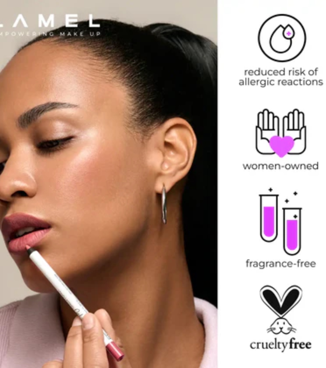 Le crayon à lèvres gel longue tenue de Lamel a une consistance de gel délicate qui assure une application uniforme et précise, restant en place toute la journée.