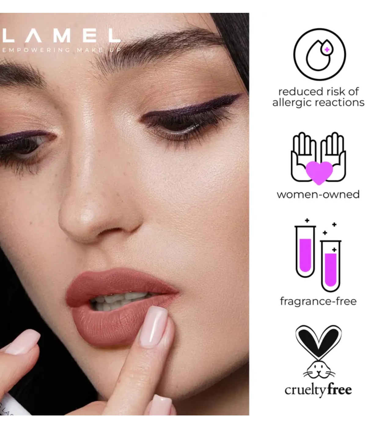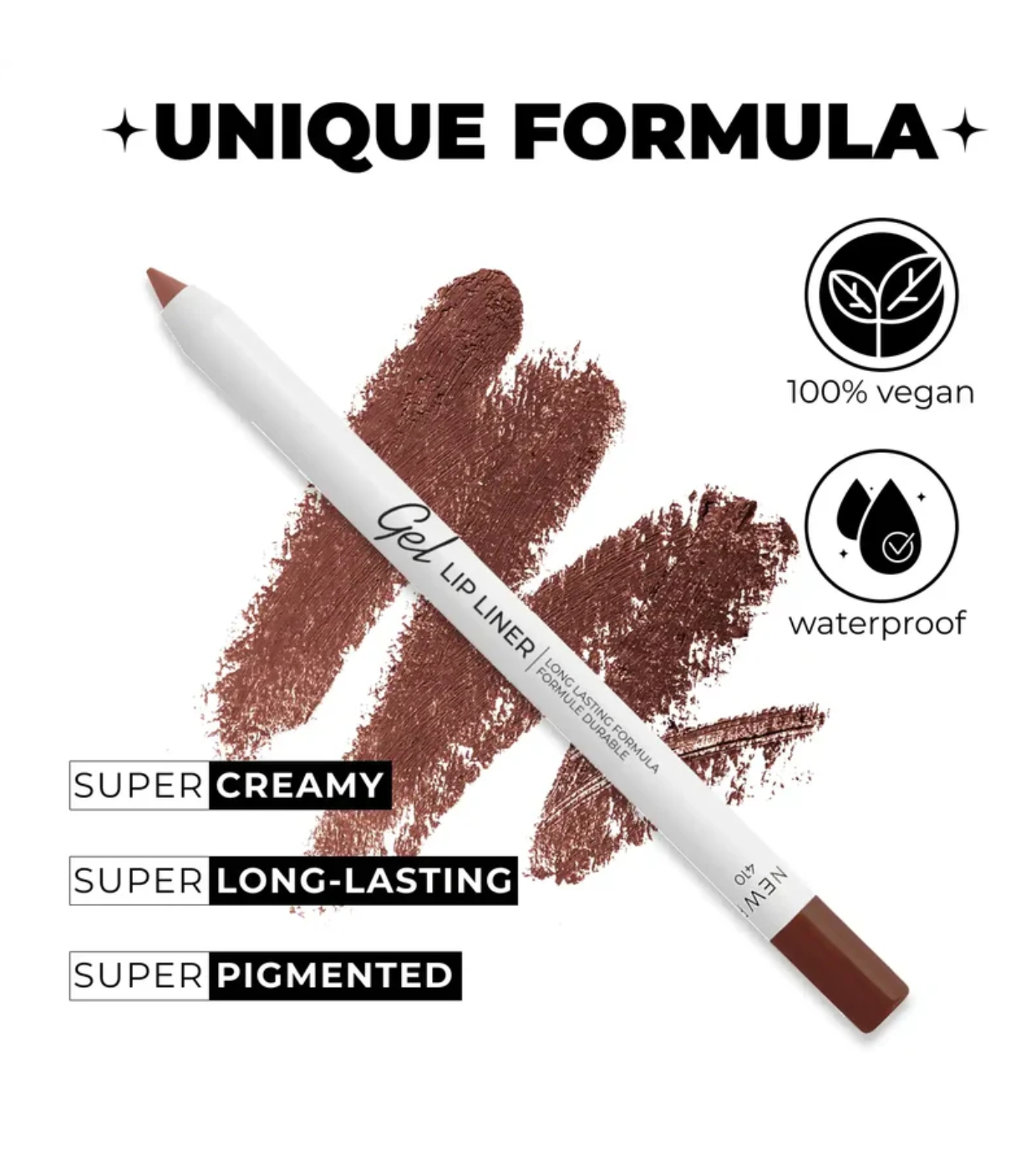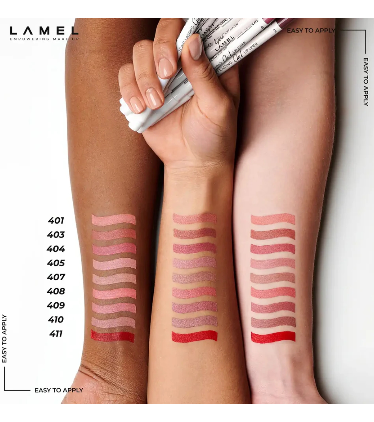 Le crayon à lèvres gel longue tenue de Lamel a une consistance de gel délicate qui assure une application uniforme et précise, restant en place toute la journée.